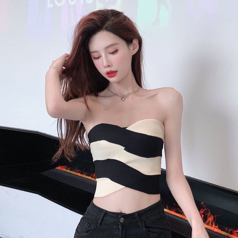 カラーストライプクロストップス サマースリム 夏物 ハンチェンe6174426611
