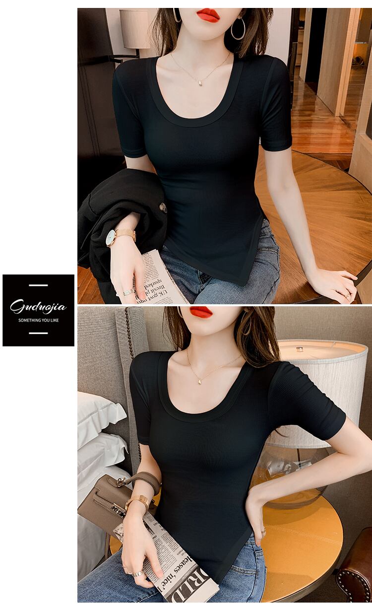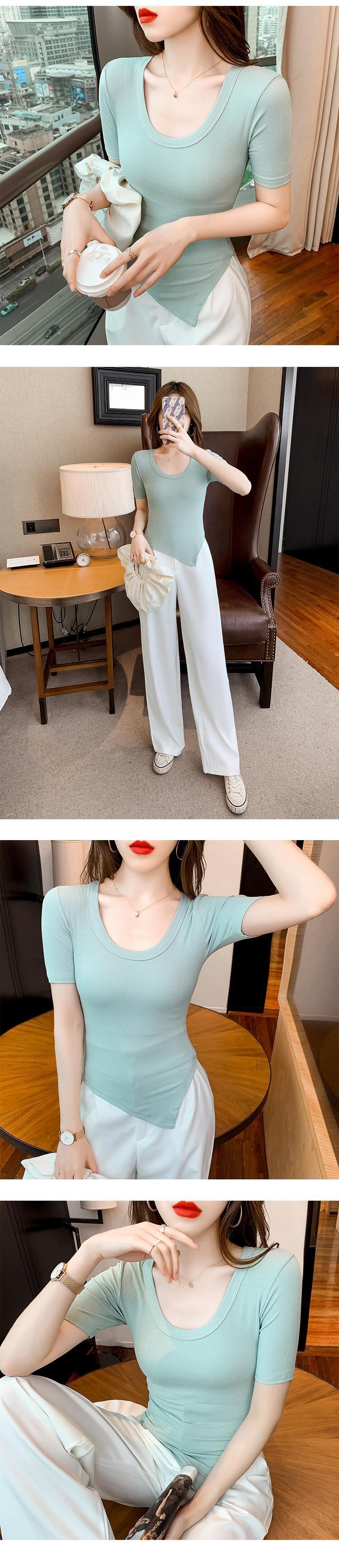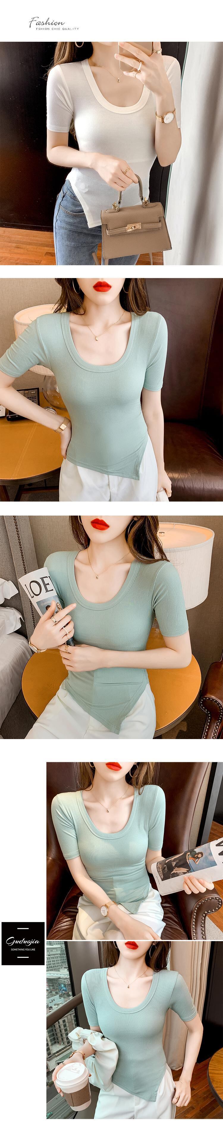 サマースタイルスリムソリッド カラーTシャツ トップス 夏物 ソリッドカラー ハンチェンe96816015676