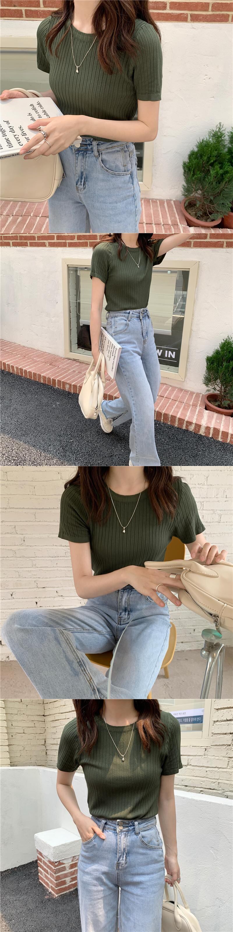 サマースタイルソリッド カラーラウンドネックセーター 薄手ブラウス レディース 夏物 Oネック ソリッドカラー ハンチェンe5662471003