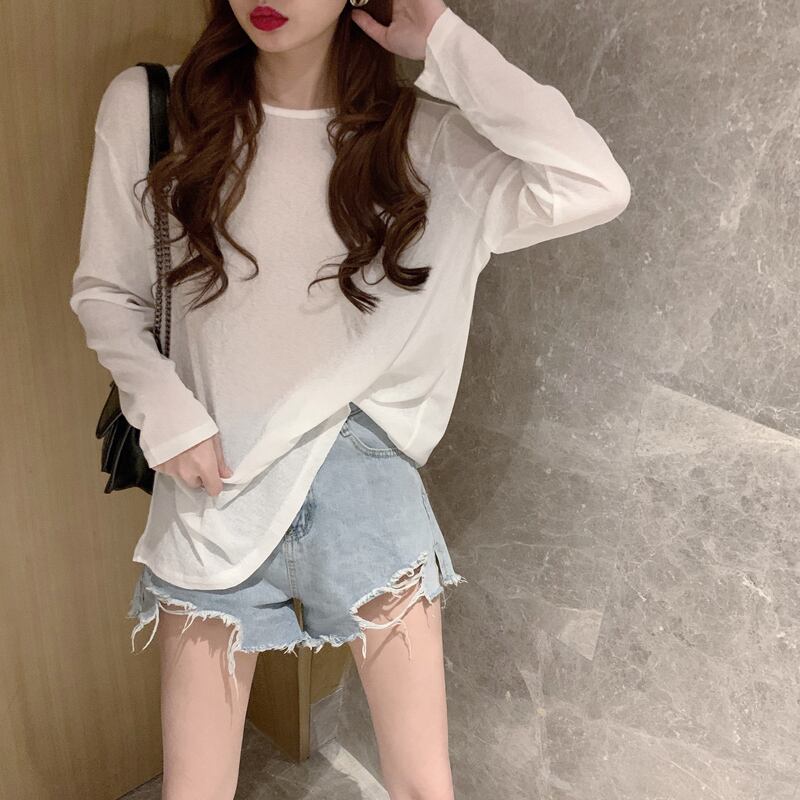 スタイルホルタールーズシャツ サマー薄手Tシャツ トップス ロング 夏物 ハンチェンe51606928503