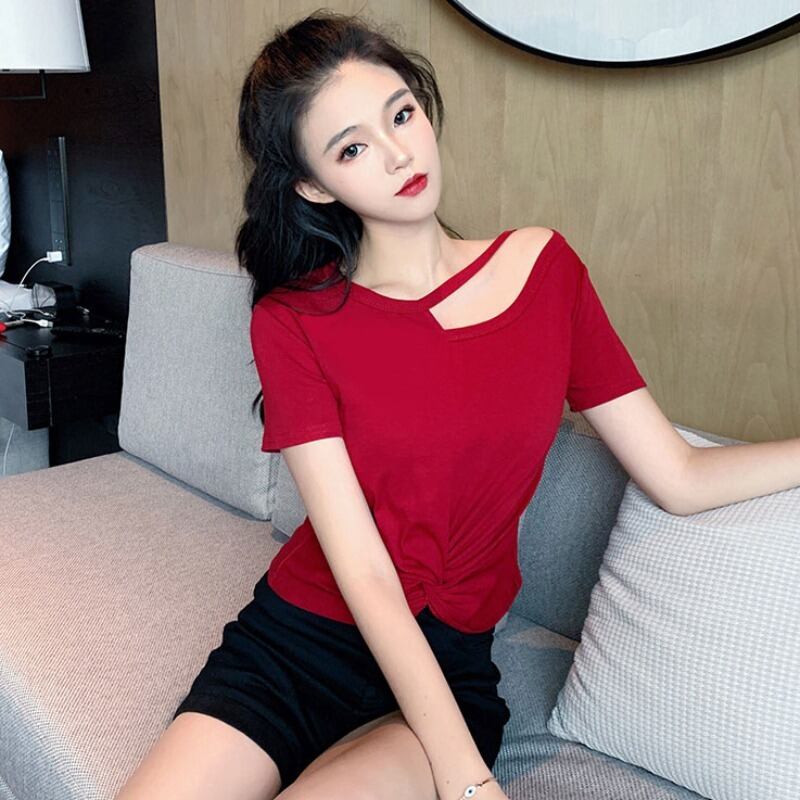 サマースタイルソリッド カラーラウンドネックTシャツ トップス 夏物 Oネック ソリッドカラー ハンチェンe75186194356