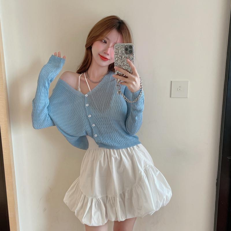 薄手Vネックセーター サマースタイルカーディガンショートトップス ロング 夏物 ハンチェンe83753918533