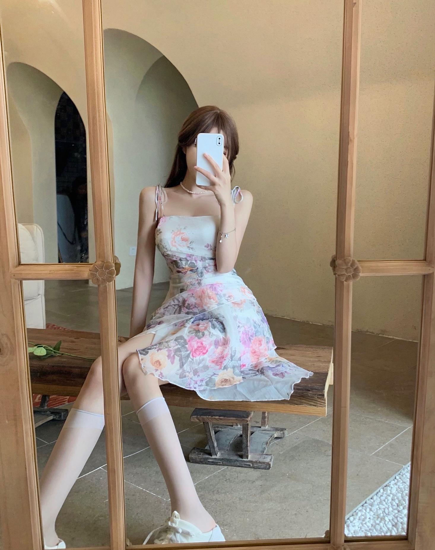 ショートスカート サマーフローラル薄手ドレス 大人ガーリー スウィート キュート カジュアル 夏物 花柄 ハンチェンe44509324323