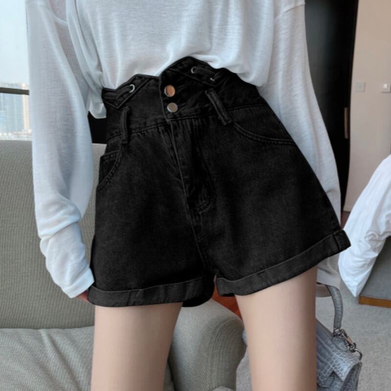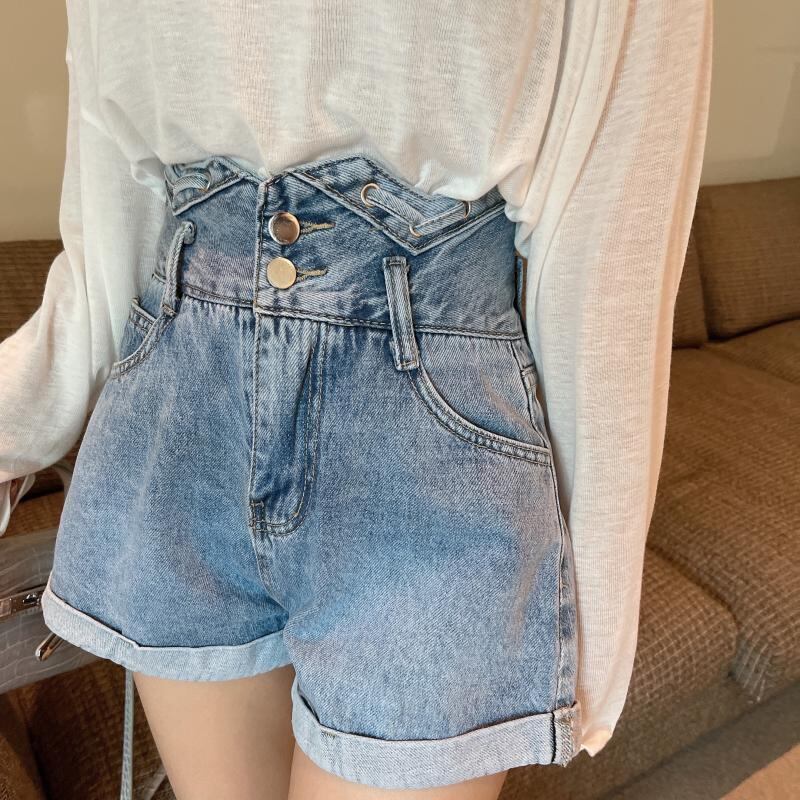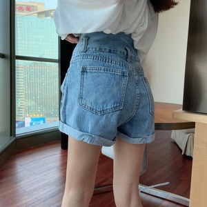 ジーンズ サマーハイウェストウェストルーズワイドレッグショーツ 夏物 ブルマー ワイドパンツ ハンチェンe18297939069