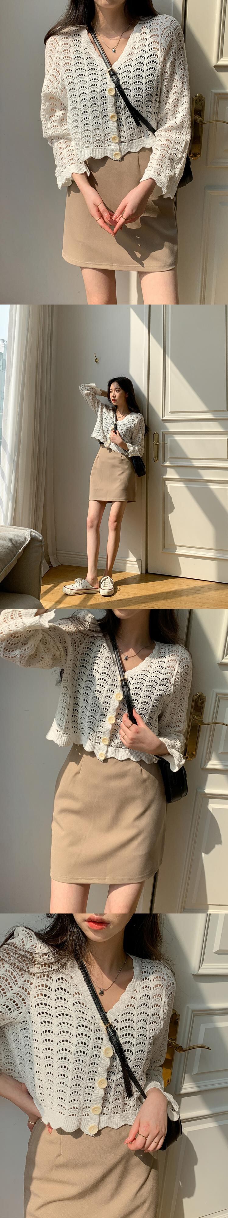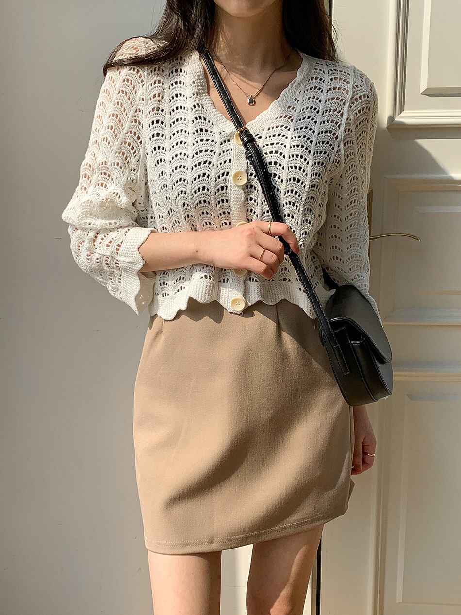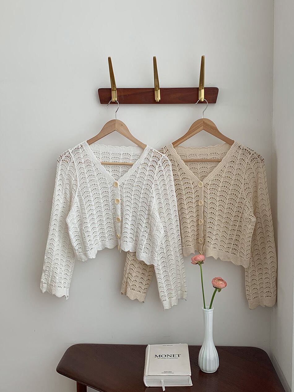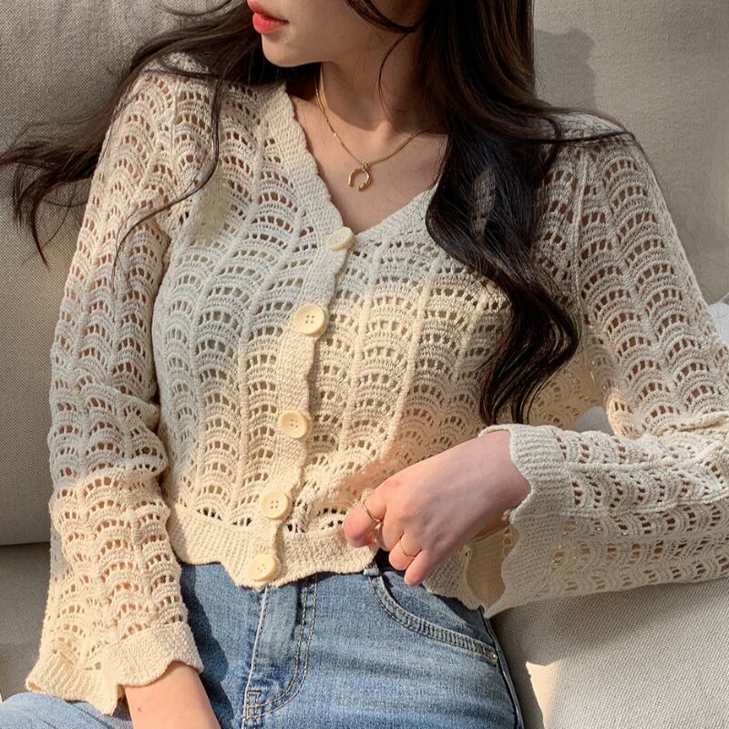 サマースタイルスタンダードVネックルーズ薄手ショートニットカーディガンジャケット レディース ロング レトロ 夏物 ハンチェンe94030182601