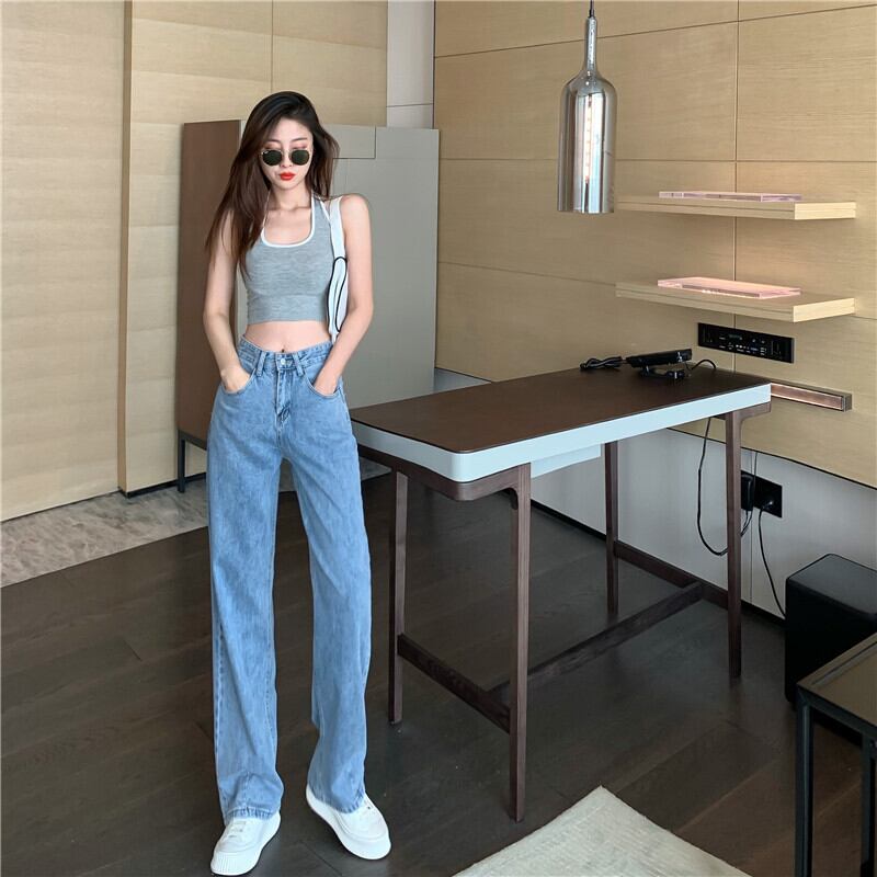 サマースタイルハイウェストウェストルーズジーンズ レディース 夏物 ハンチェンe57660772897