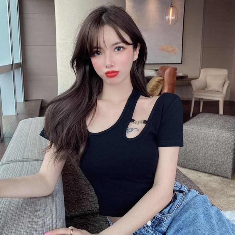 サマーカラーストラップレスショートスリムTシャツ トップス レディース 夏物 ハンチェンe60020412436
