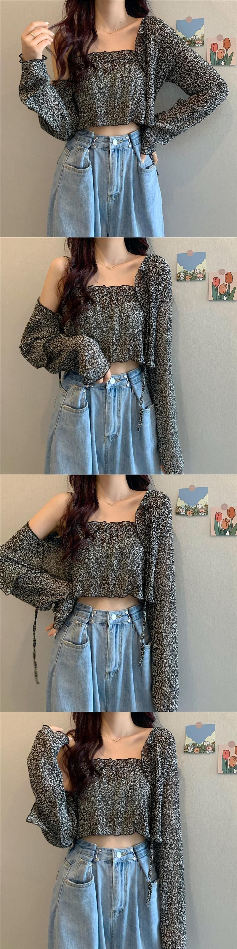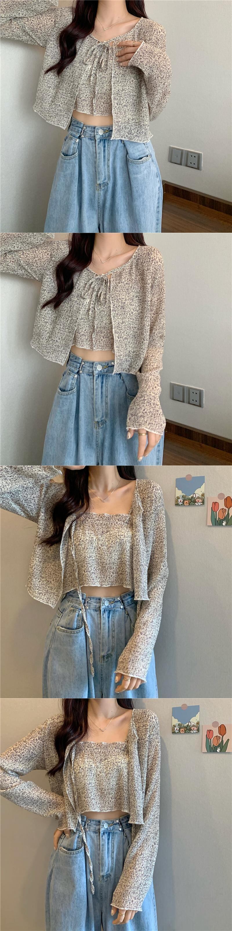 サマーフローラルシフォンジャケット カーディガン ロング 夏物 花柄 ハンチェンe7363848845