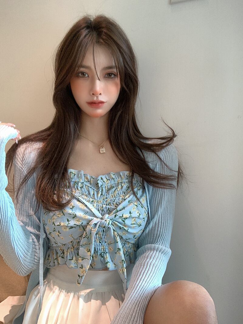 サマーフローラルニットカーディガンジャケット 夏物 花柄 ハンチェンe96002873058