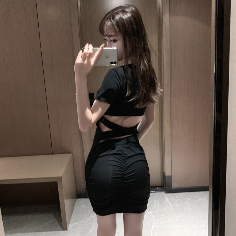 ショートスカート サマーホルタークロススリムドレス 夏物 スリムヒップ ハンチェンe59397478198