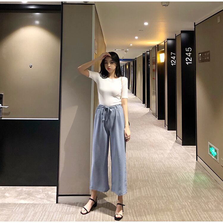 サマースタイルルーズ薄手ハイウェストウェストカジュアルパンツ レディース 夏物 ハンチェンe32634766573
