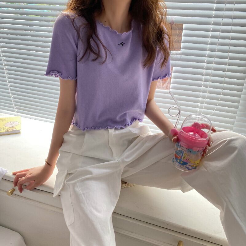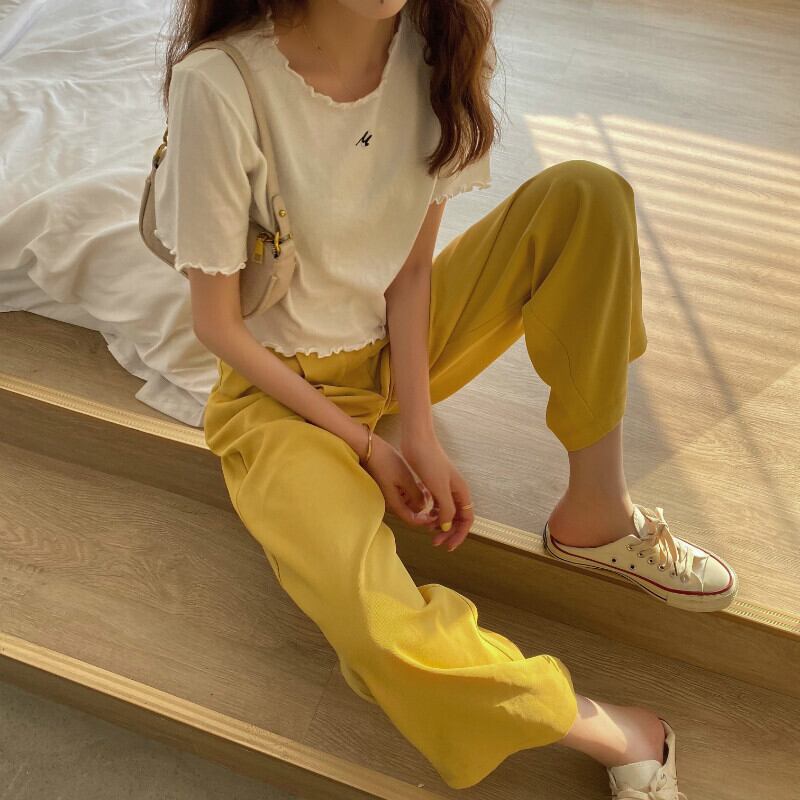 サマースタイルラウンドネック薄手ベーシックニットトップス レディース 夏物 Oネック ハンチェンe11748168113