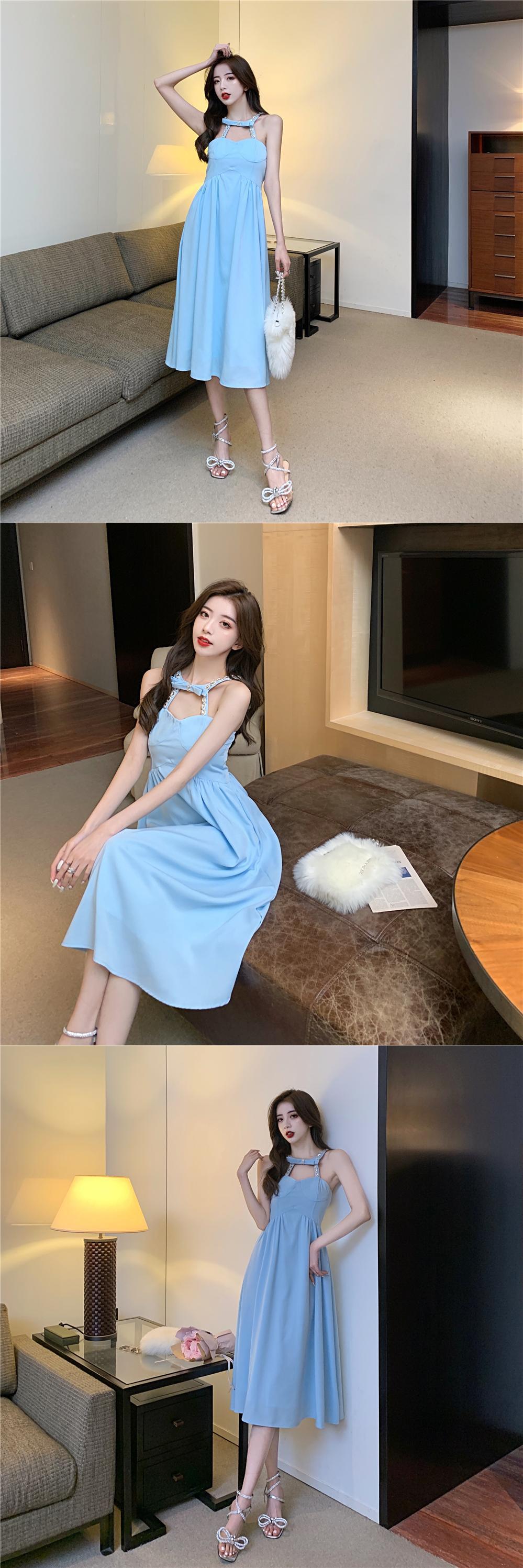 サマートップス ハイウェストウェストドレス 夏物 ハンチェンe90045292834