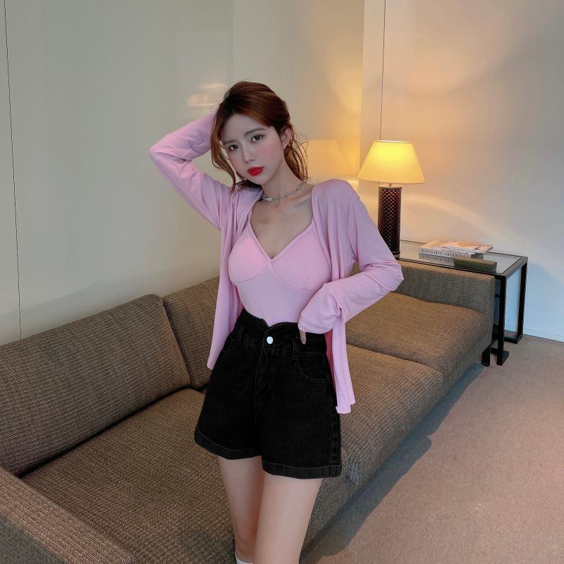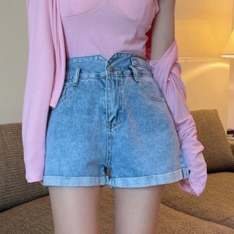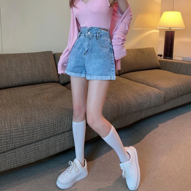 ジーンズ サマーハイウェストウェストルーズワイドレッグショーツ 夏物 ブルマー ワイドパンツ ハンチェンe65481038721