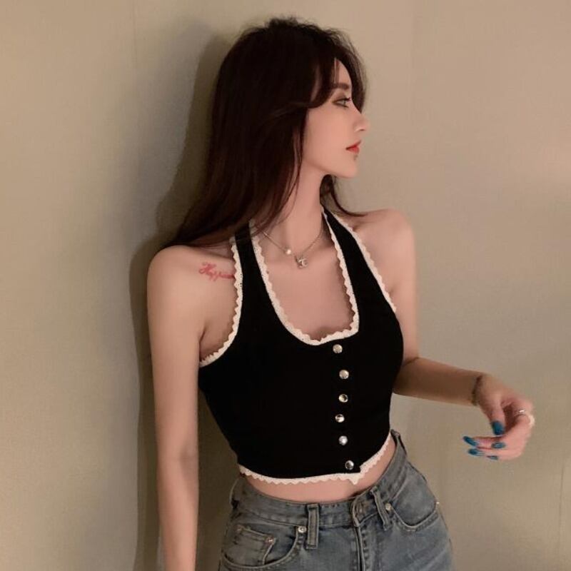 サマースリムショートホルタートップス 夏物 ハンチェンe95347907434