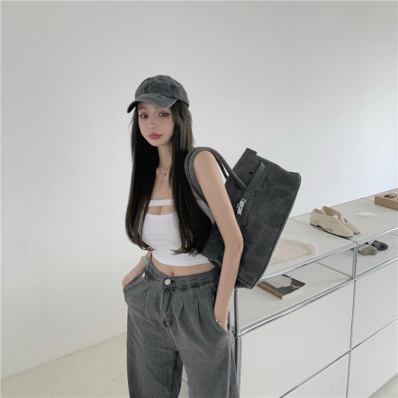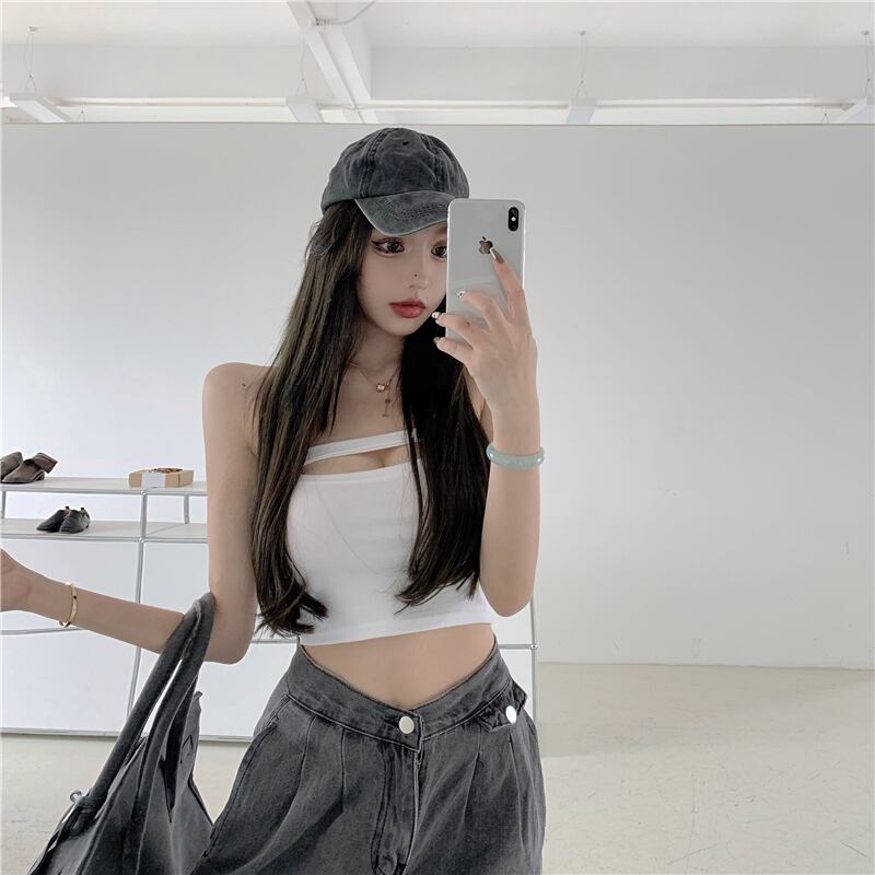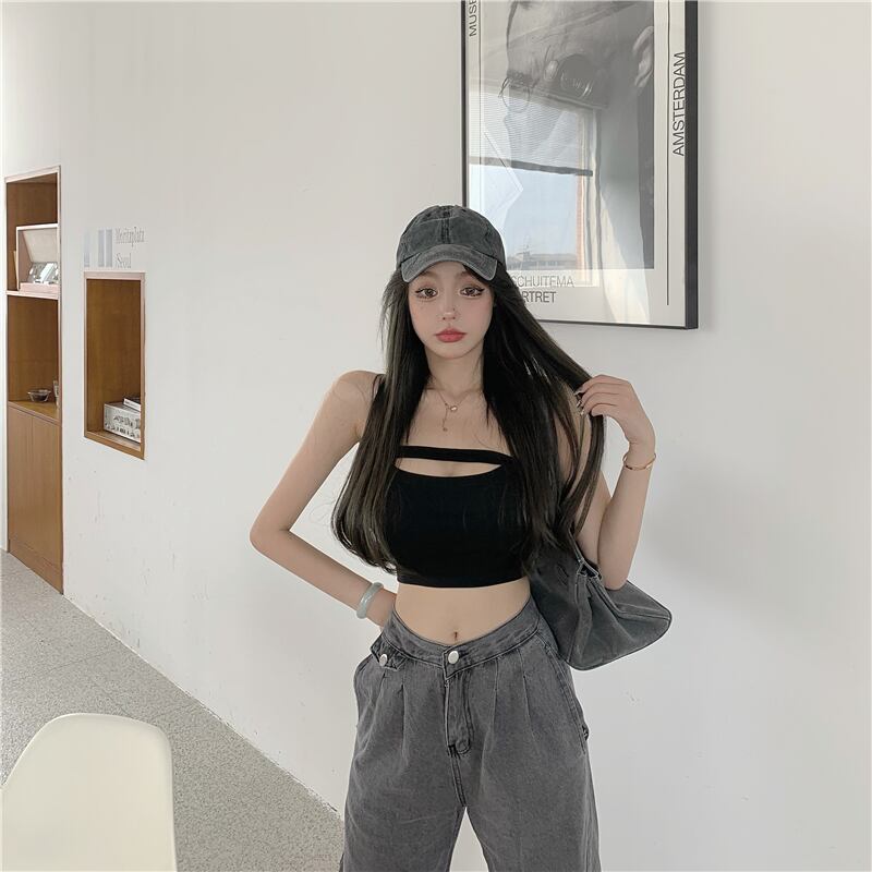 スプリングストラップレストップス ショートスリムブラック 春物 ハンチェンe21652879232