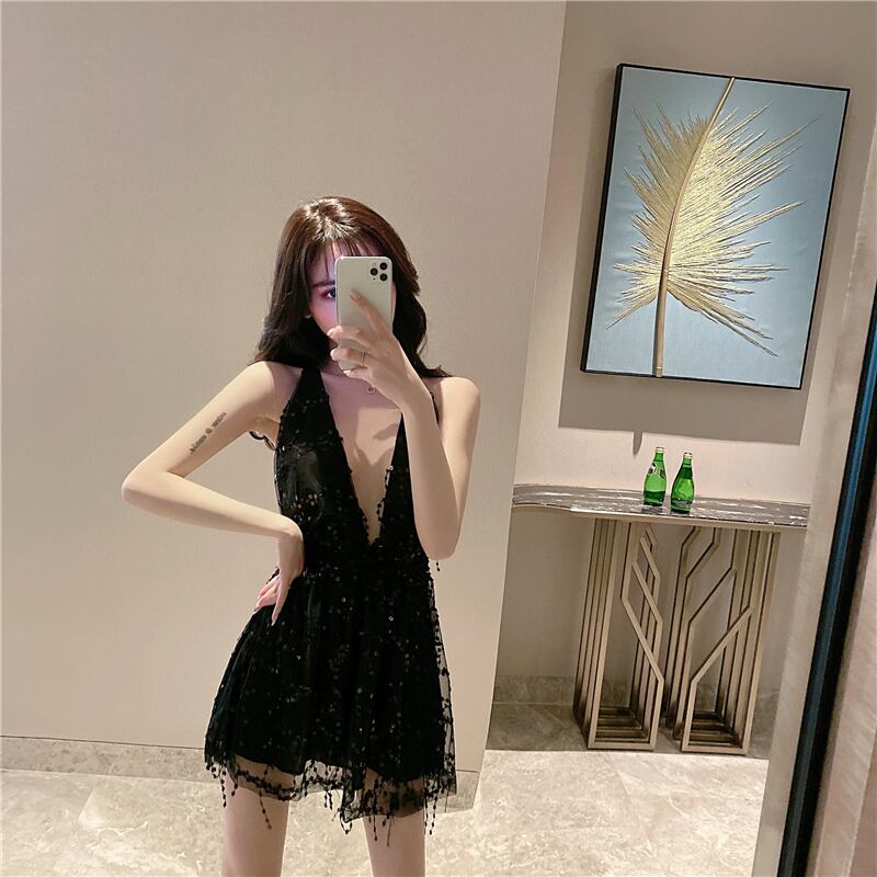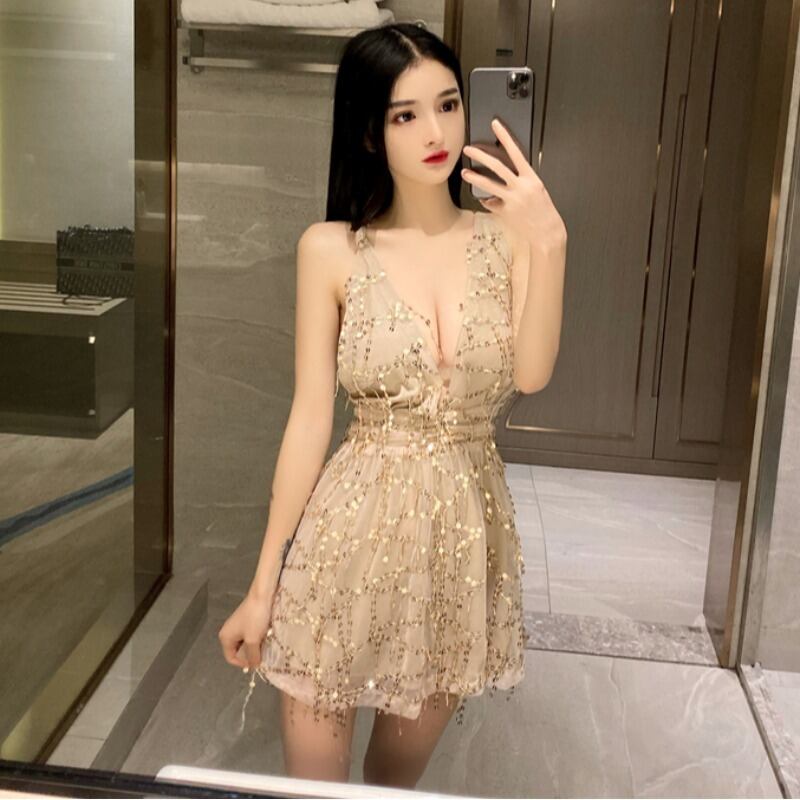 サマーVネックウェストAラインスリムドレス レディース 夏物 ハンチェンe43043357539