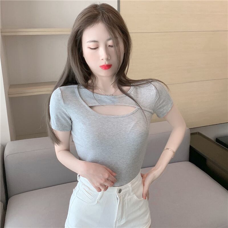 ラウンドネックショートTシャツ サマーソリッド カラートップス 夏物 Oネック ソリッドカラー ハンチェンe65129720505