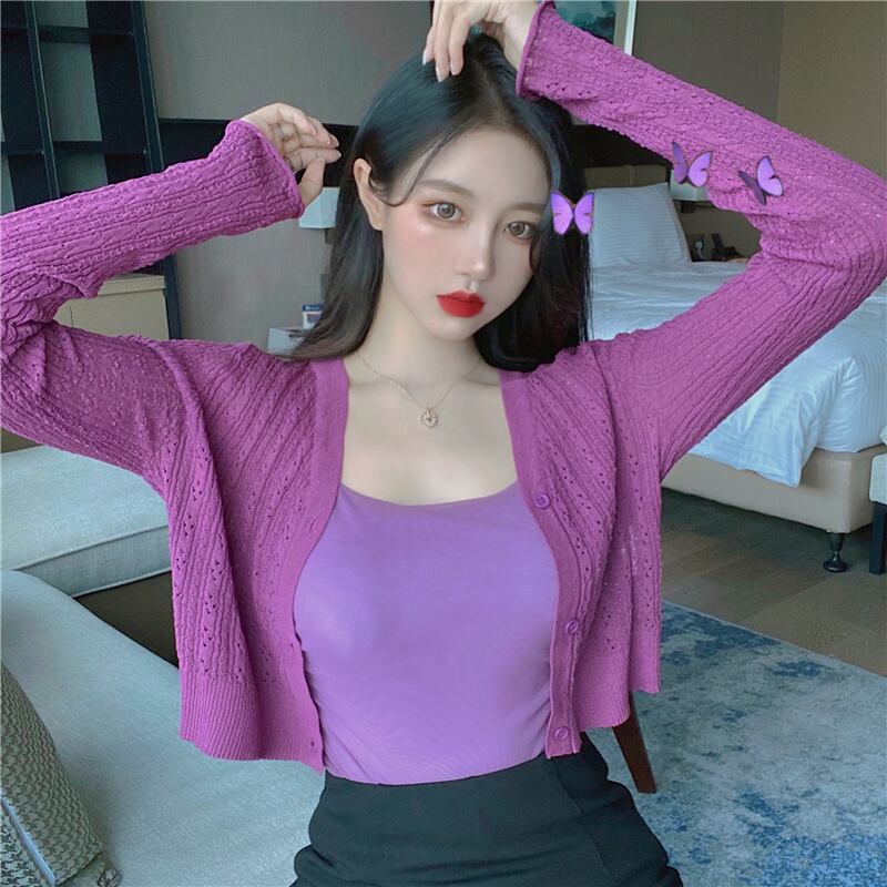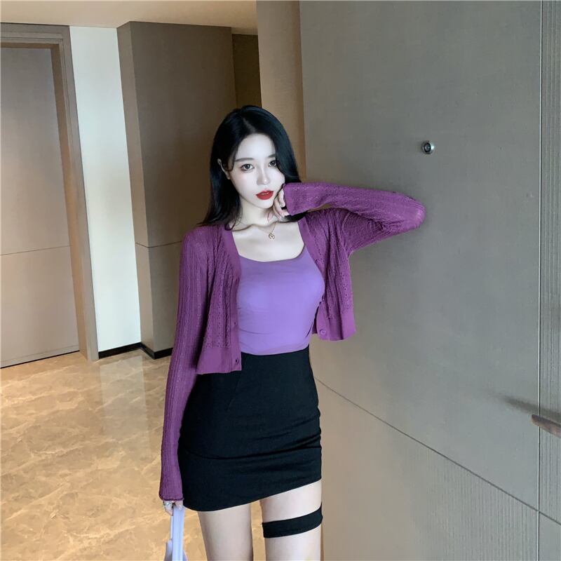 レディースサマーニットカーディガントップス スカート 夏物 ハンチェンe51616214155