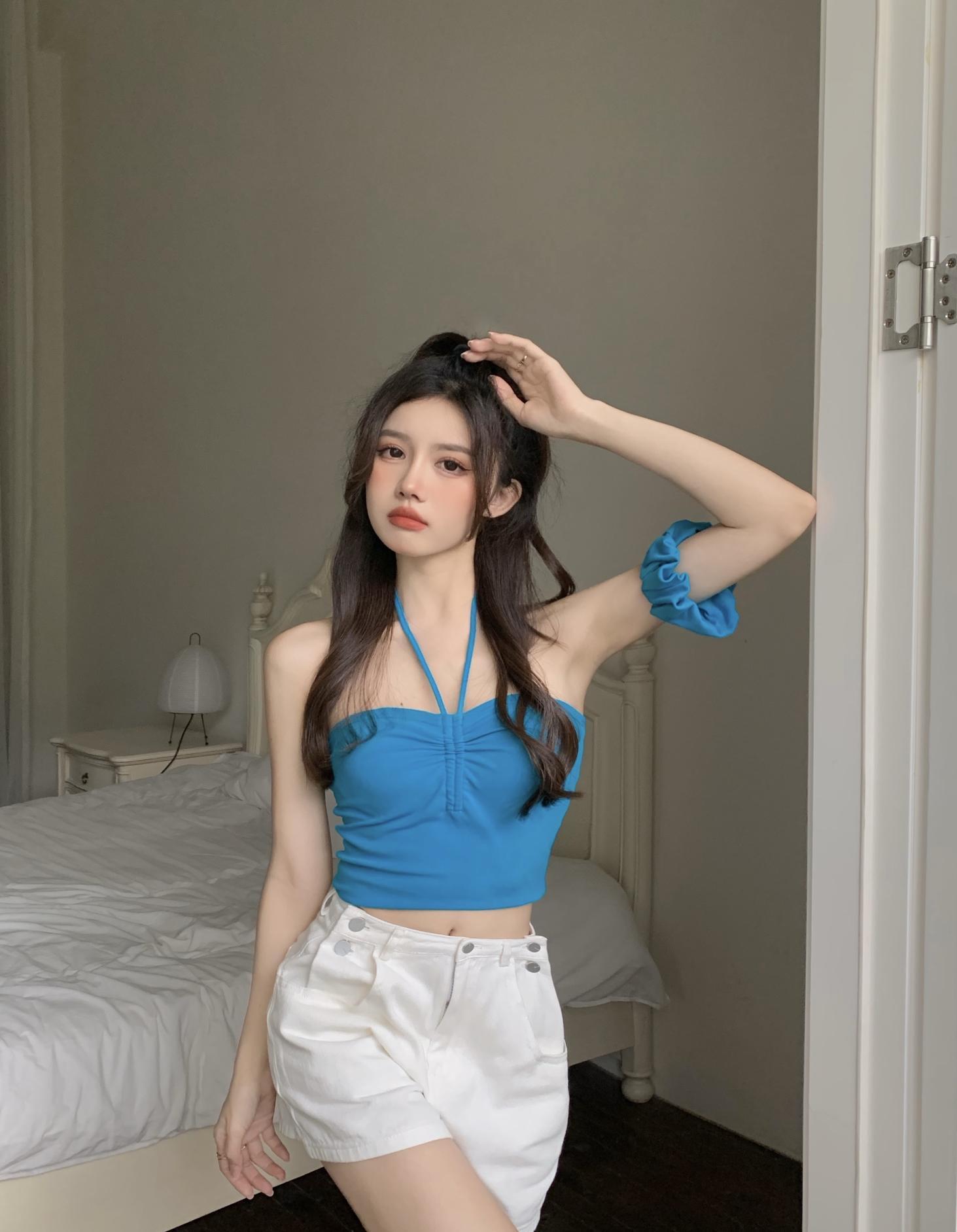 サマースタイルホルターノースリーブトップス レディース 夏物 ピュア ハンチェンe42374925550