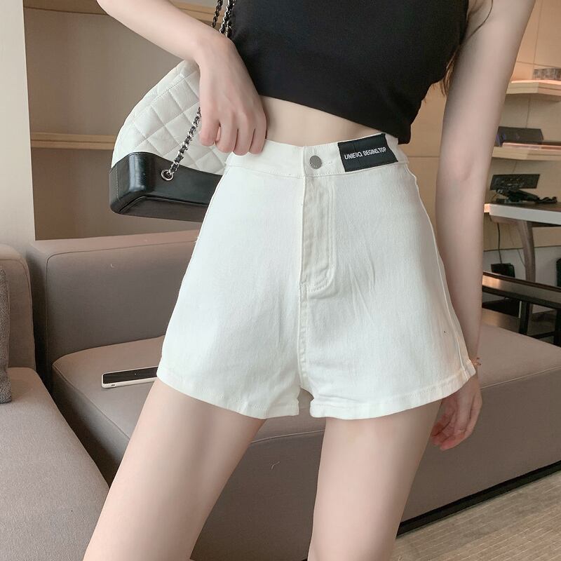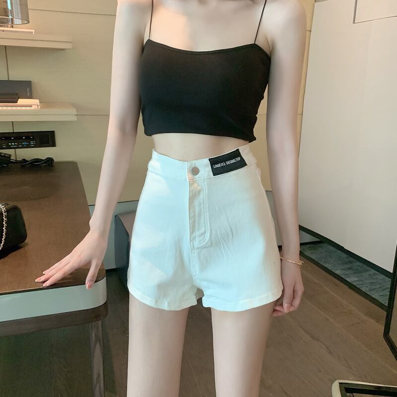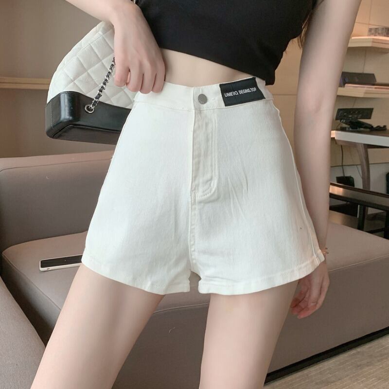 ショートジーンズ サマーレッドハイウェストウェストルーズパンツ レディース 夏物 ハンチェンe29102018844