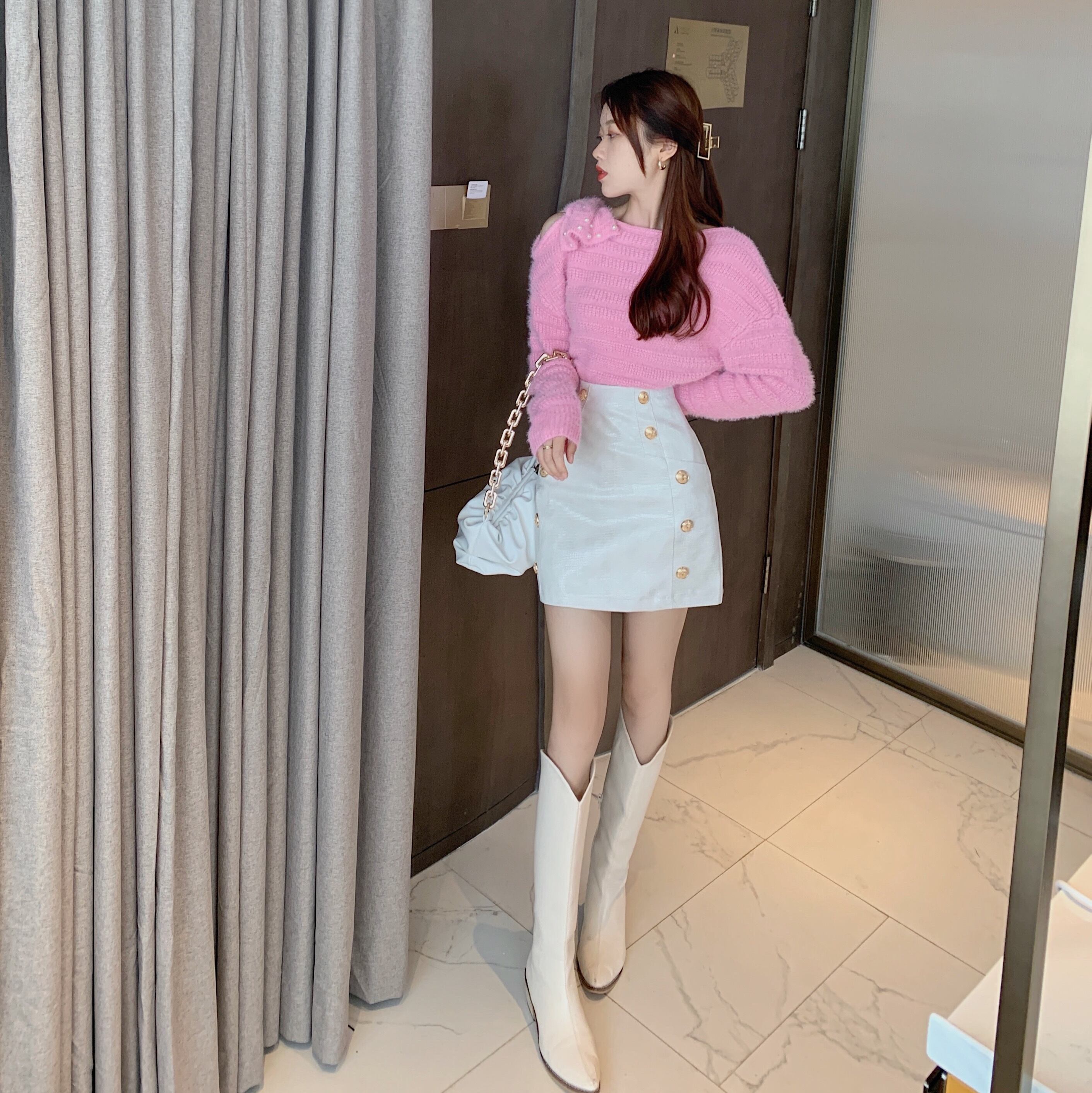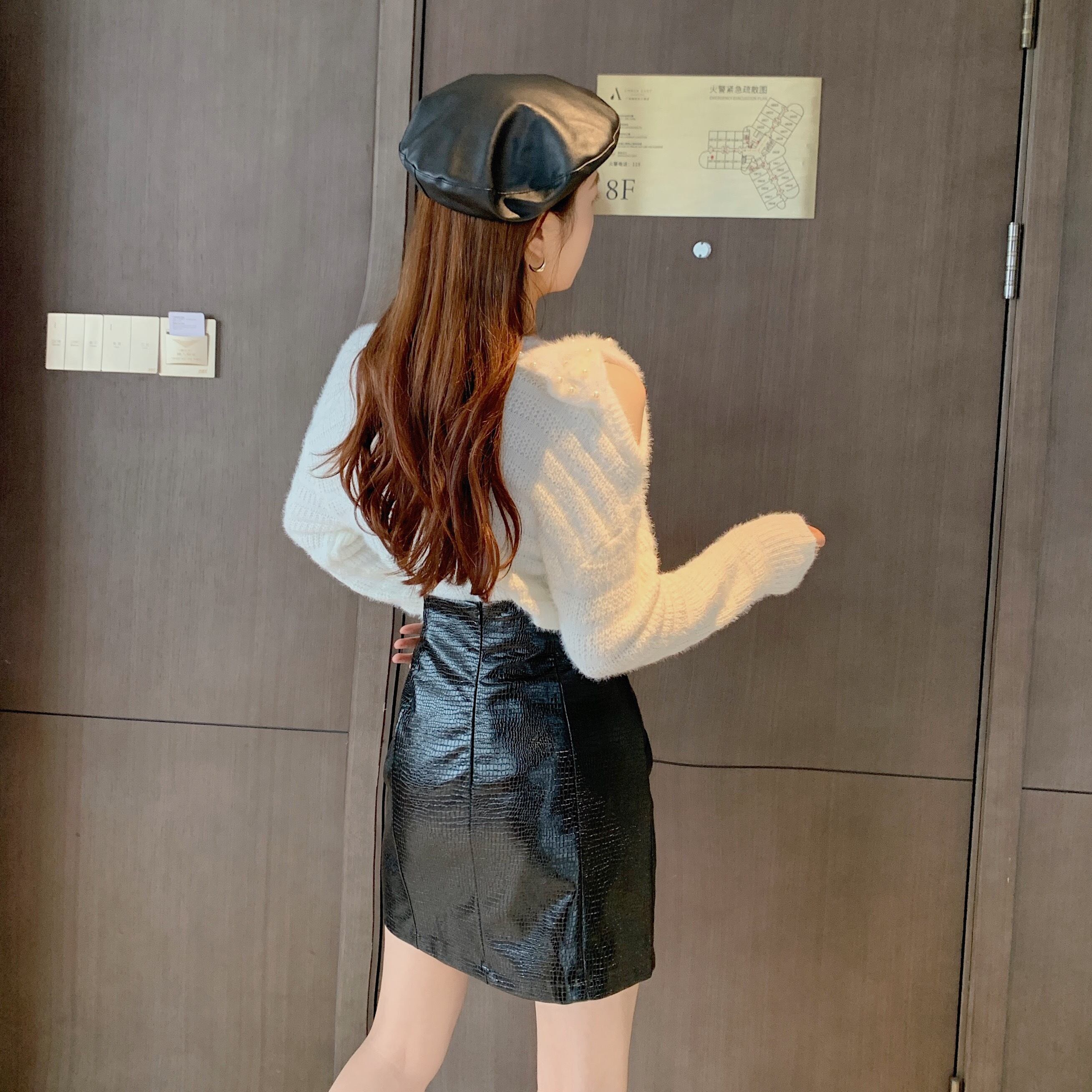 色:黒革のスカート,アプリコットレザースカート