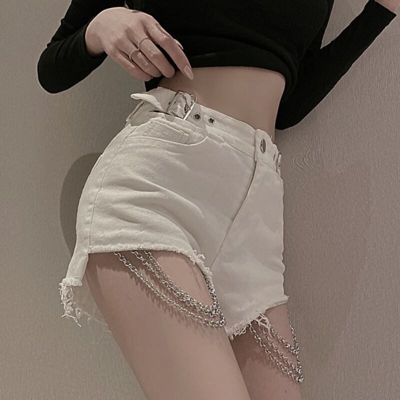 ショーツ サマーハイウェストウェストルーズチェーン スタンダードファーワイドレッグパンツ レトロ ストリート 夏物 ブルマー ワイドパンツ ハンチェンe2260116937