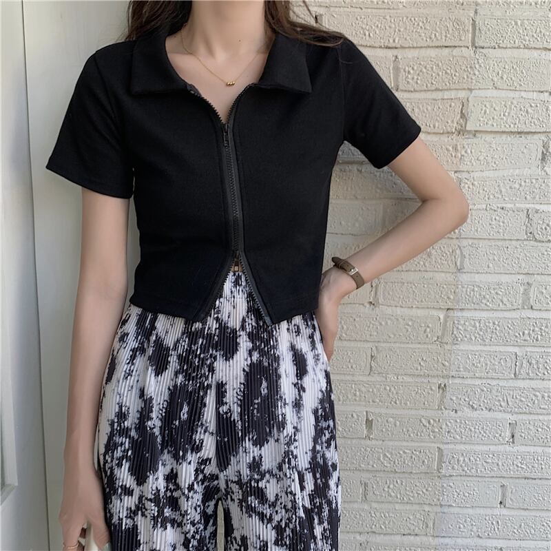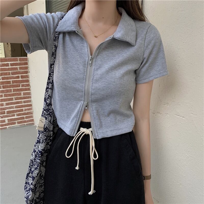 サマースタイル半袖スリーブダブルジッパーニットカーディガンジャケット レディース ショート ハーフスリーブ 夏物 ハンチェンe22188204380