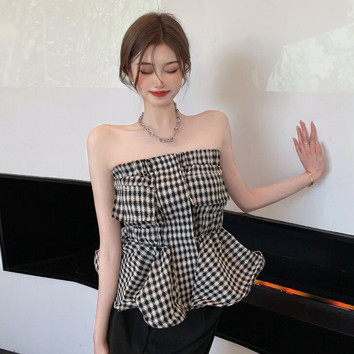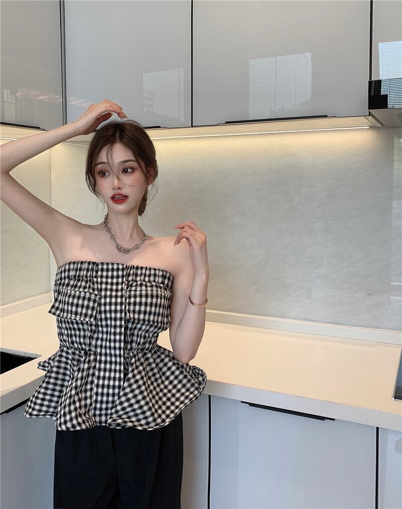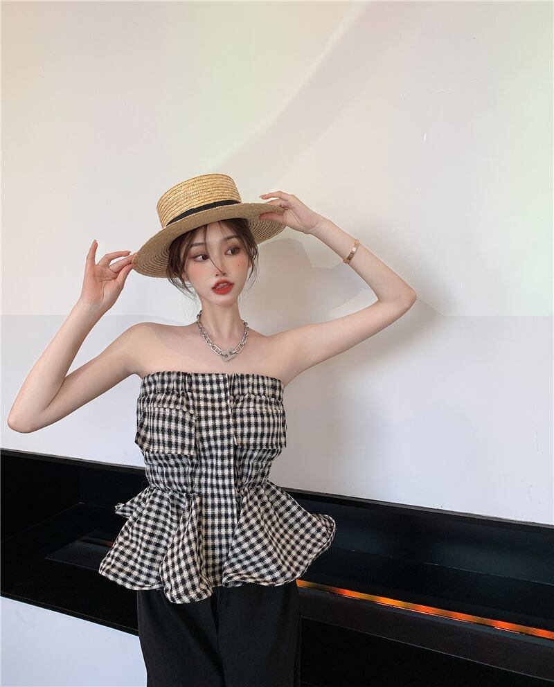 格子柄トップス サマーウェストノースリーブレディース 夏物 ハンチェンe31873972810