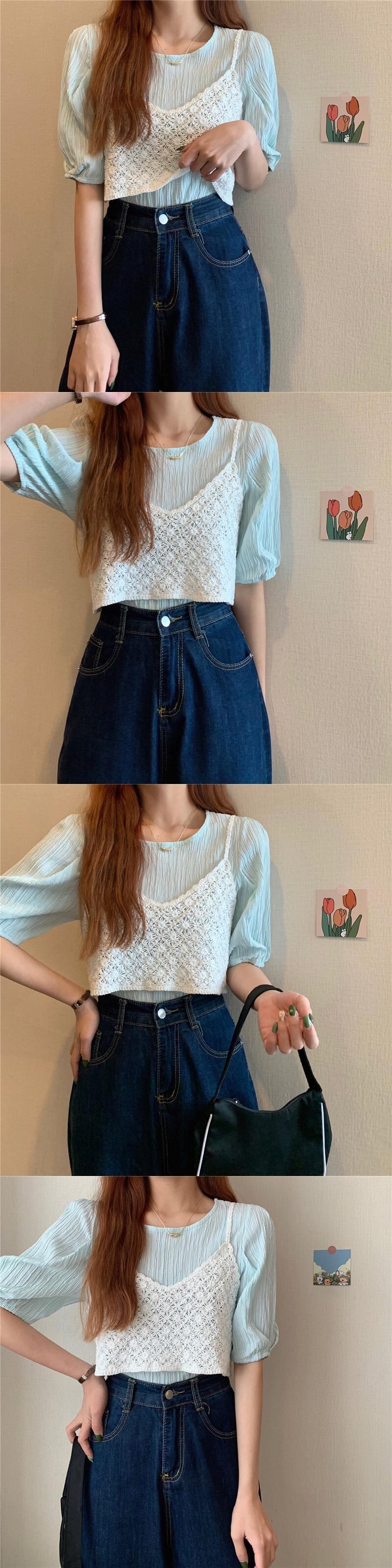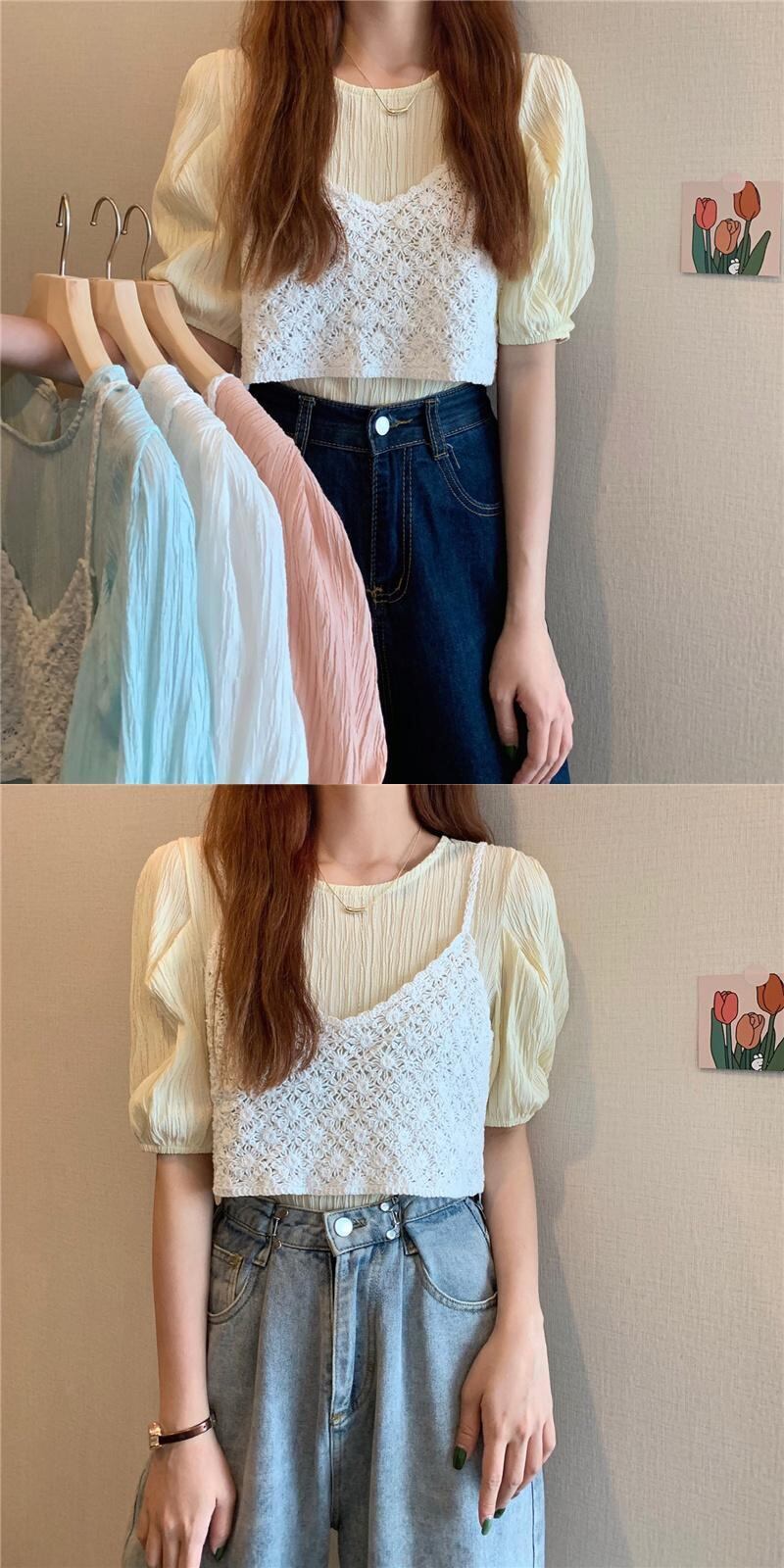 サマーVネックスリーブシフォンシャツ 大人ガーリー スウィート キュート カジュアル 夏物 ハンチェンe80781552305