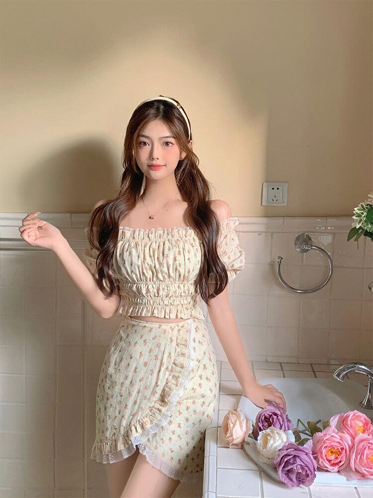 サマーショートトップス ハイウェストウェストスカート 夏物 ハンチェンe66051802499