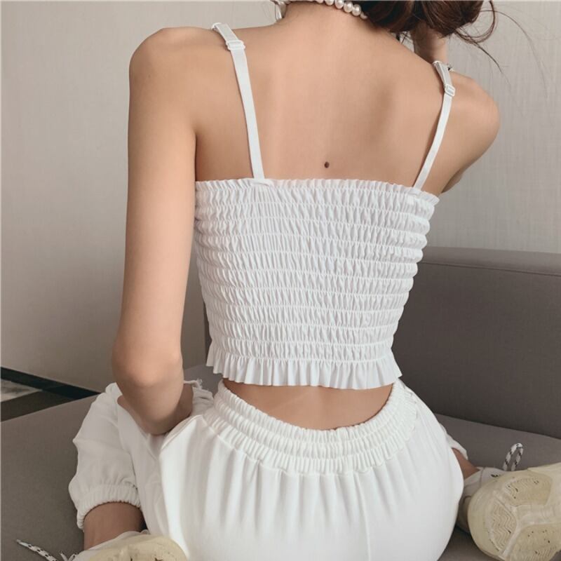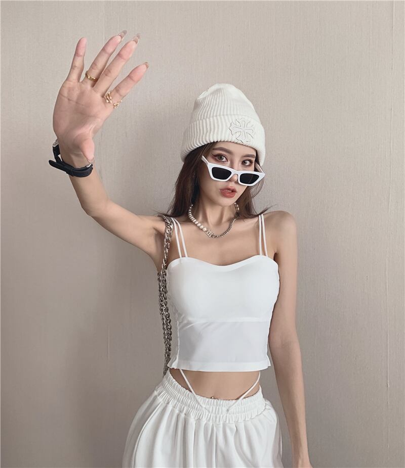 トップス サマースタイルプリーツベルト ノースリーブショートレディース 夏物 ハーネス シルク ハンチェンe41369918705