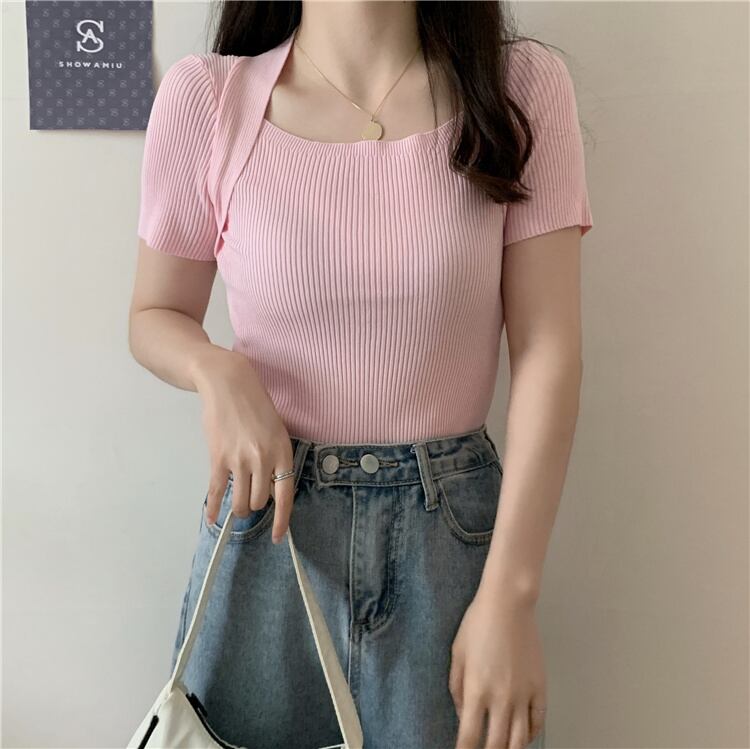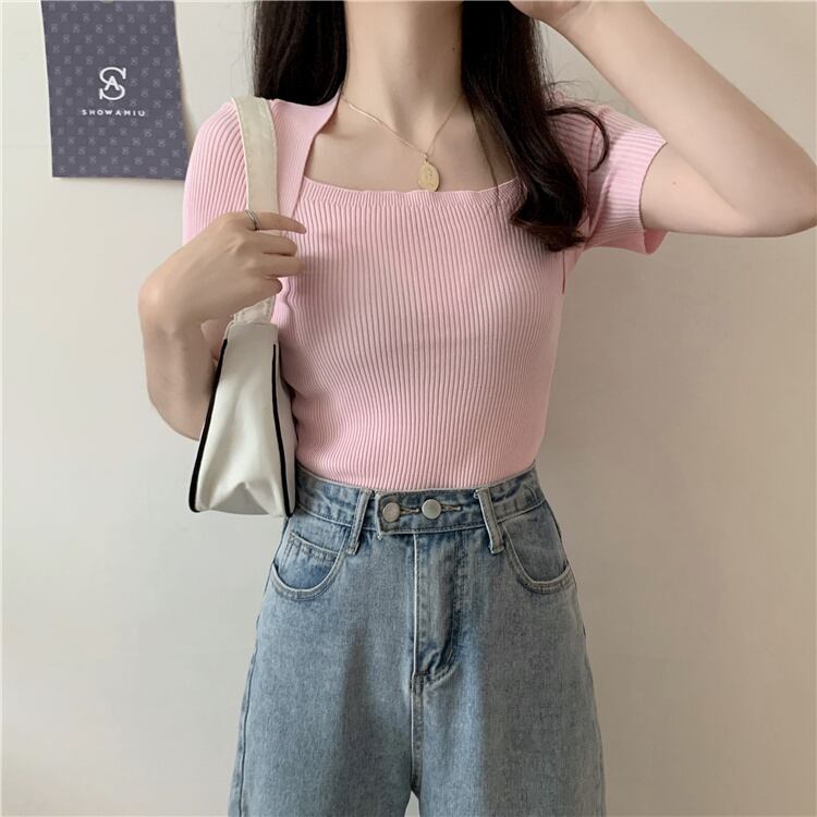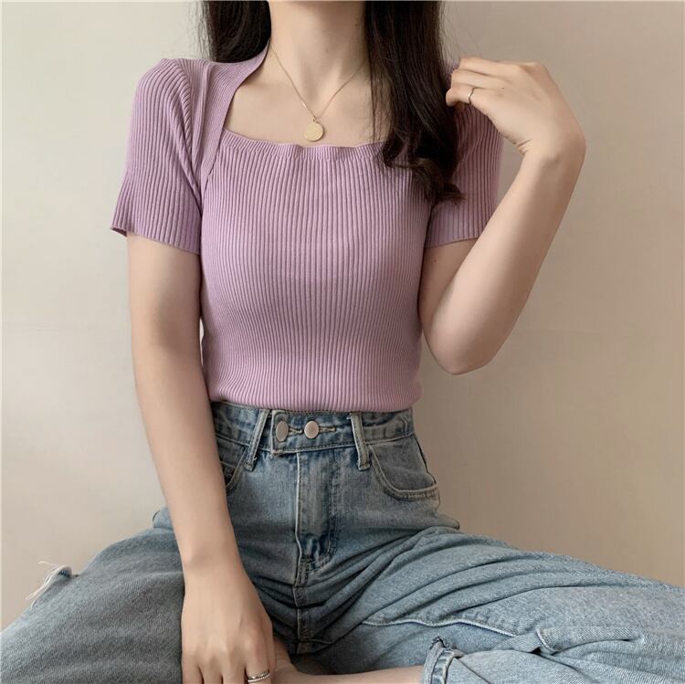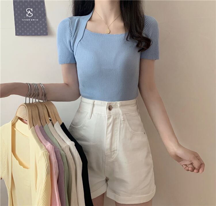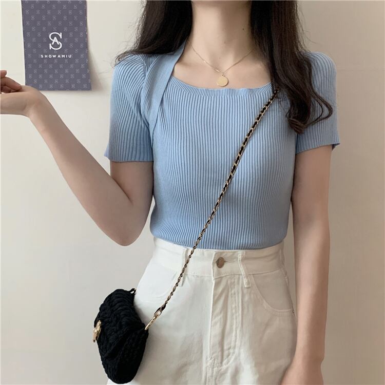 サマーニットショートトップス レディース 夏物 シルク スクウェア ハンチェンe89419108544