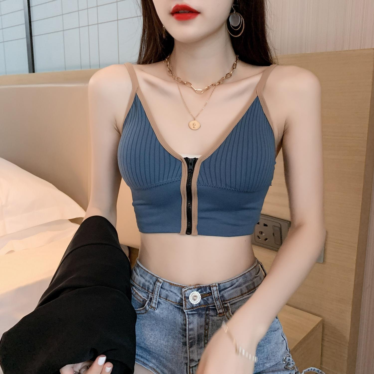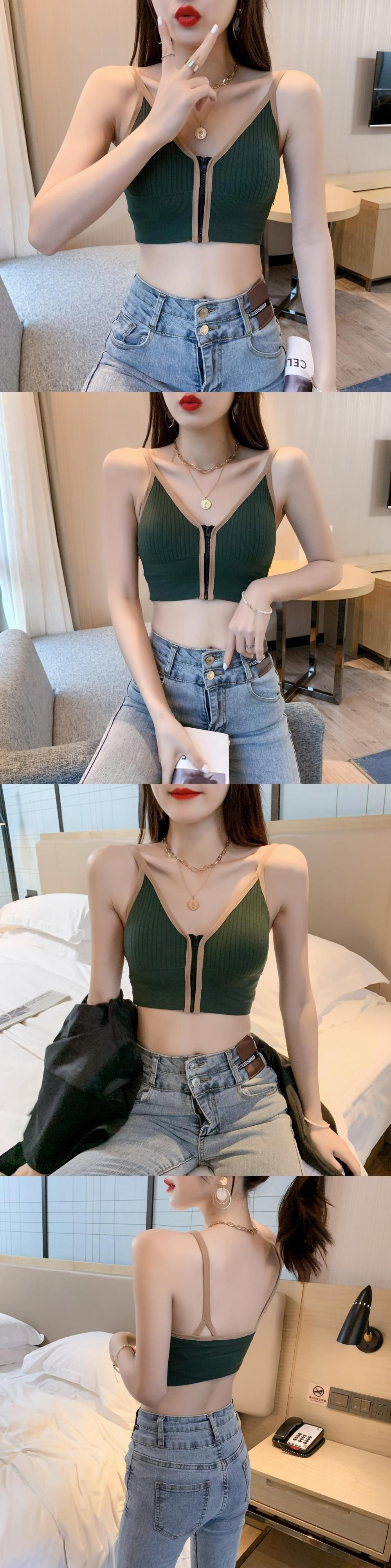 ジッパーサマーVネックリング トップス 夏物 指輪 ハンチェンe20448671759