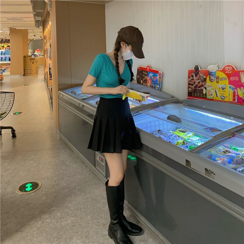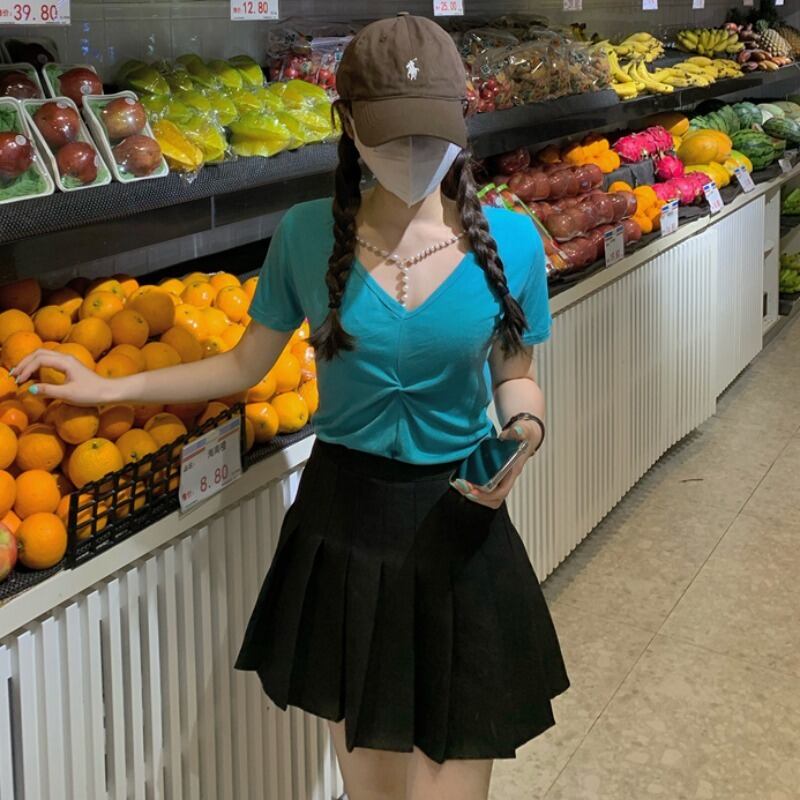 サマーTシャツ トップス ハイウェストプリーツスカート 夏物 ハンチェンe72141186932
