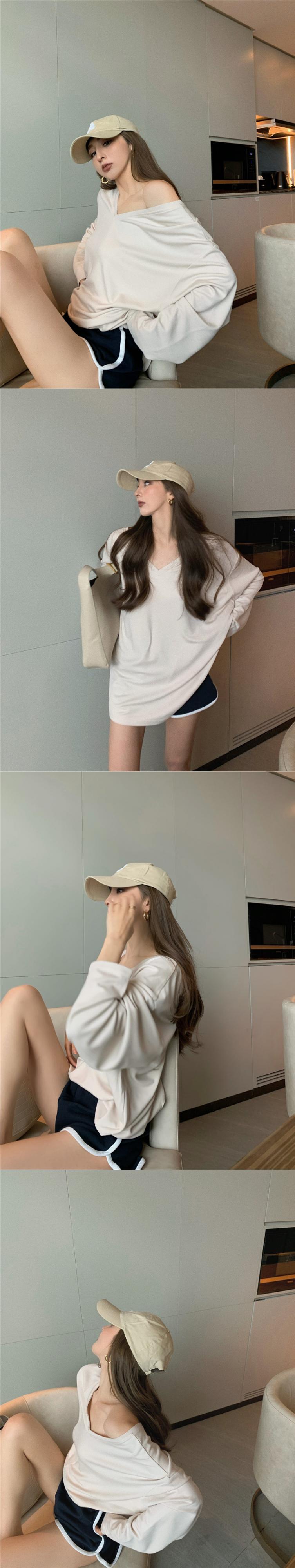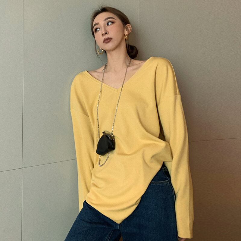 サマーVネックルーズスリムTシャツ トップス ロング 夏物 ハンチェンe37385812370
