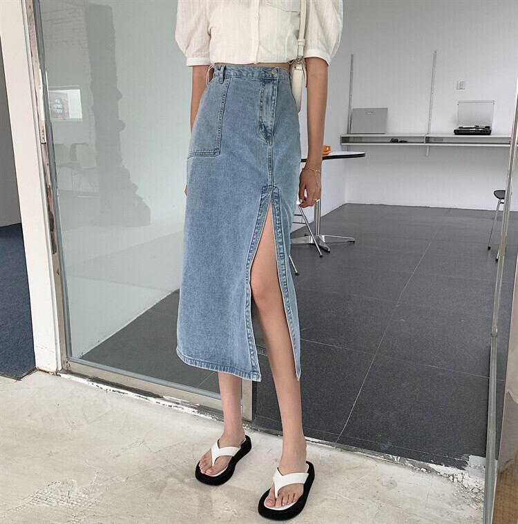 スカート サマーハイウェストロング 夏物 ハンチェンe94890884027