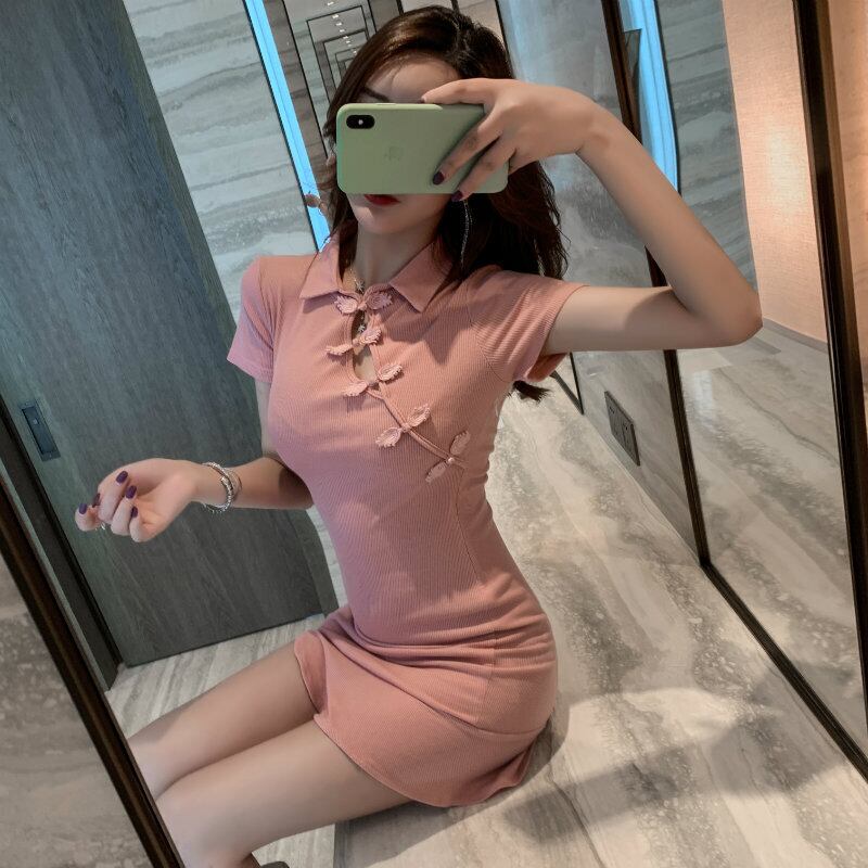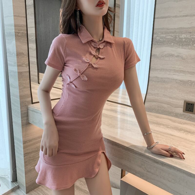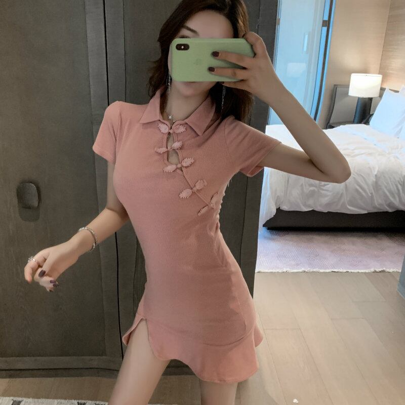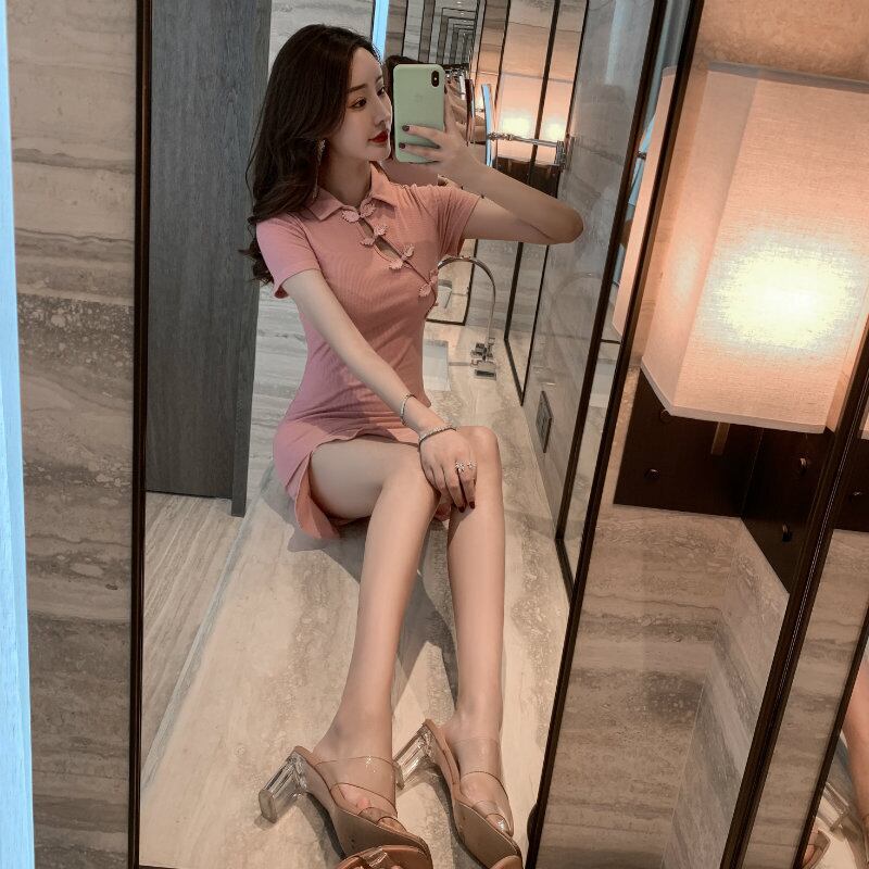 サマースタイルスリムスタンダードスカート レッドドレス レトロ 夏物 ハンチェンe89446129096