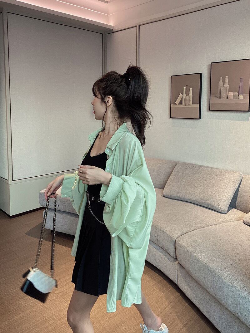 色:シングルホワイトシャツ,緑のシャツ,ワンピースホルターストラップ,ワンピースベルトブラックドレス,スリーピースの白いシャツ,スリーピースグリーンシャツ