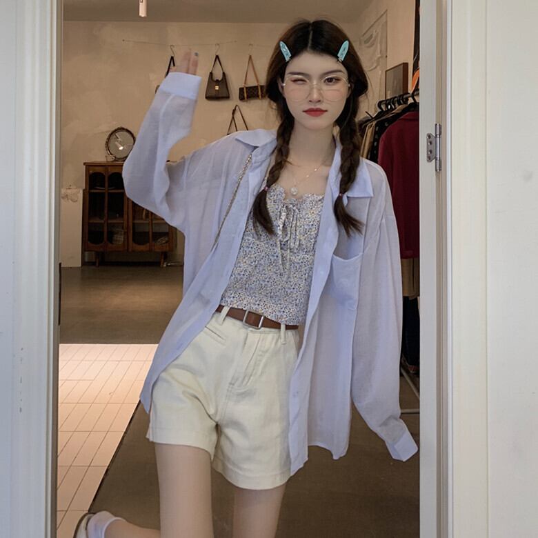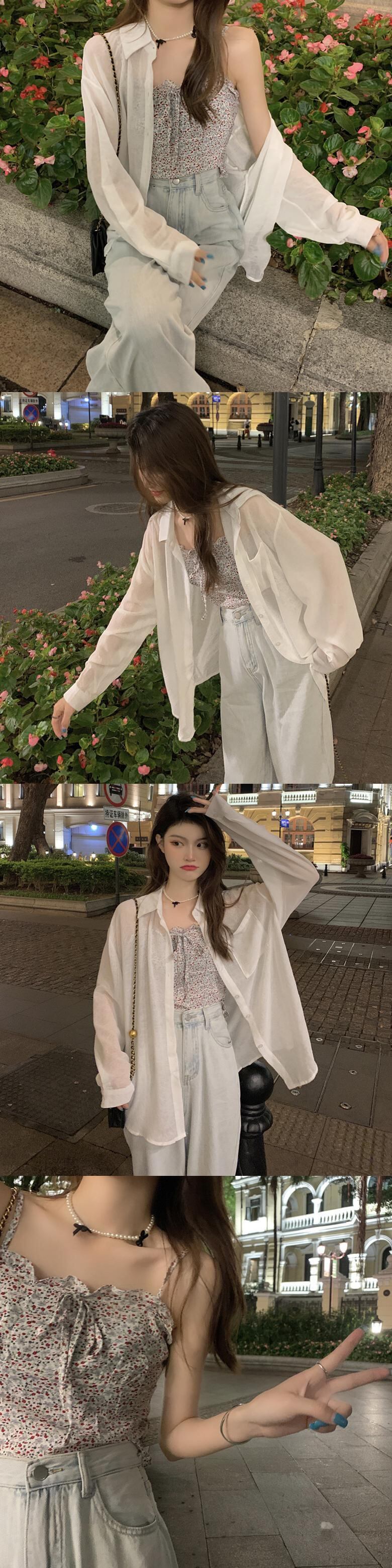 サマーフローラルルーズ薄手シャツ 夏物 花柄 ハンチェンe40390366439