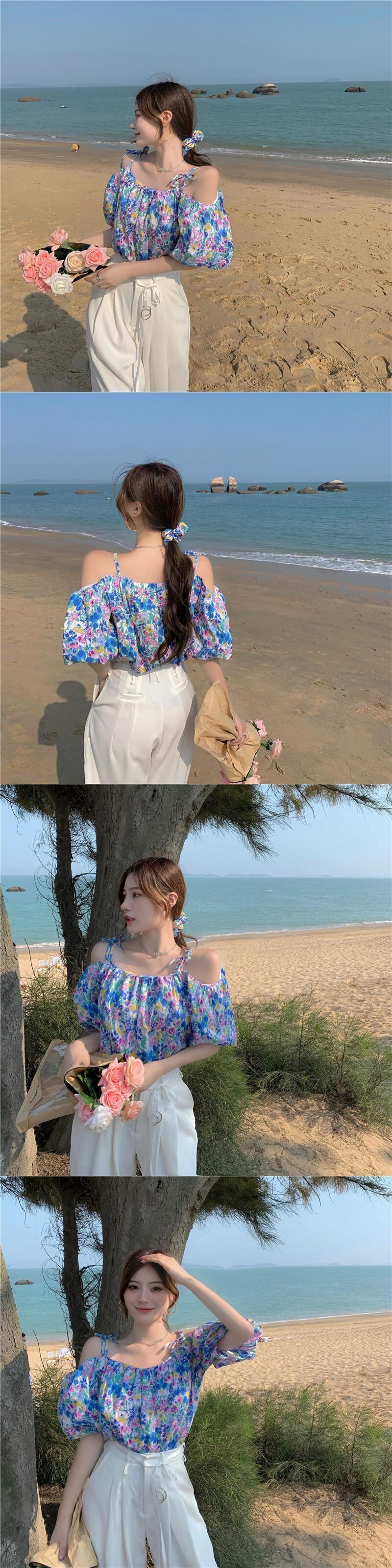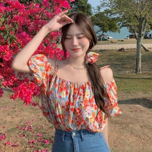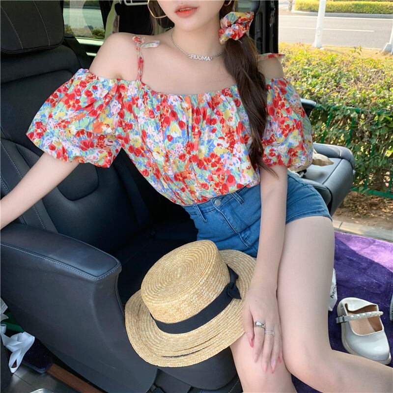 フローラルシャツ レディースサマースタイルストラップレスプリントトップス 夏物 花柄 ハンチェンe57801258455
