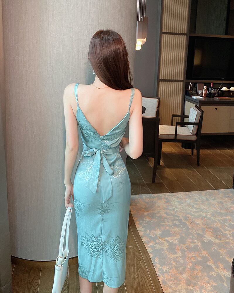 ドレス サマースタイルバックVネックウェスト 夏物 ハンチェンe62364323229