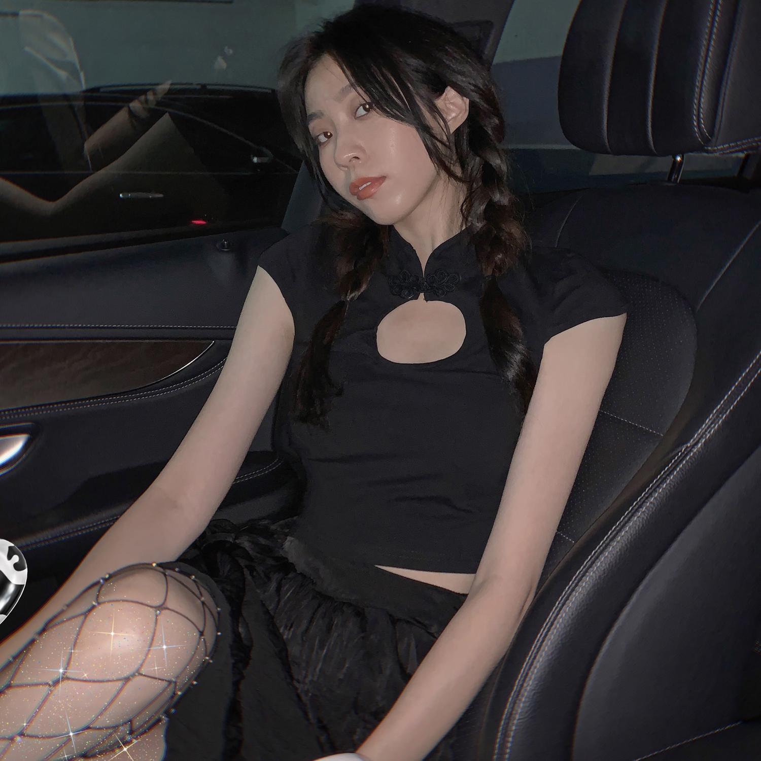 自然派スタイルスタンダードボタンショートトップス サマーカラースリムTシャツ レトロ 夏物 ハンチェンe16447148190