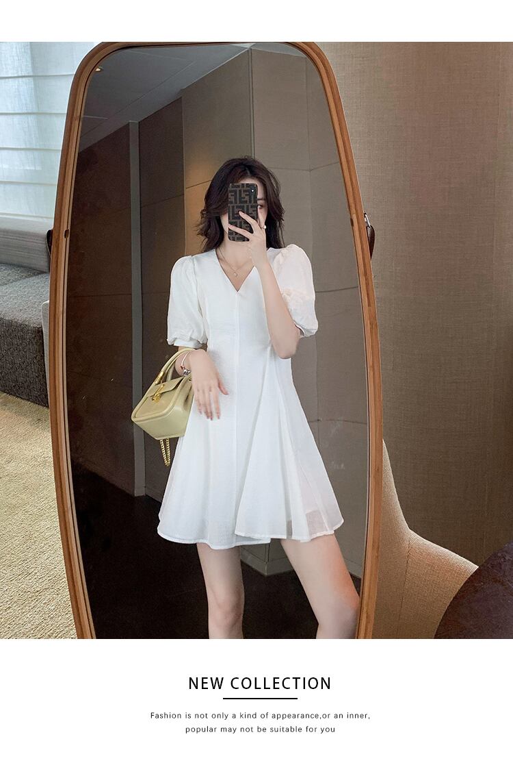 スリーブドレス サマーVネックウェスト薄手Aラインスカート 夏物 ハンチェンe71847233175