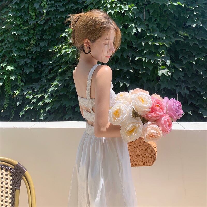 スタイルプリーツハイウェストウェストドレス サマーロングスカート エレガント 夏物 ハンチェンe78373941760