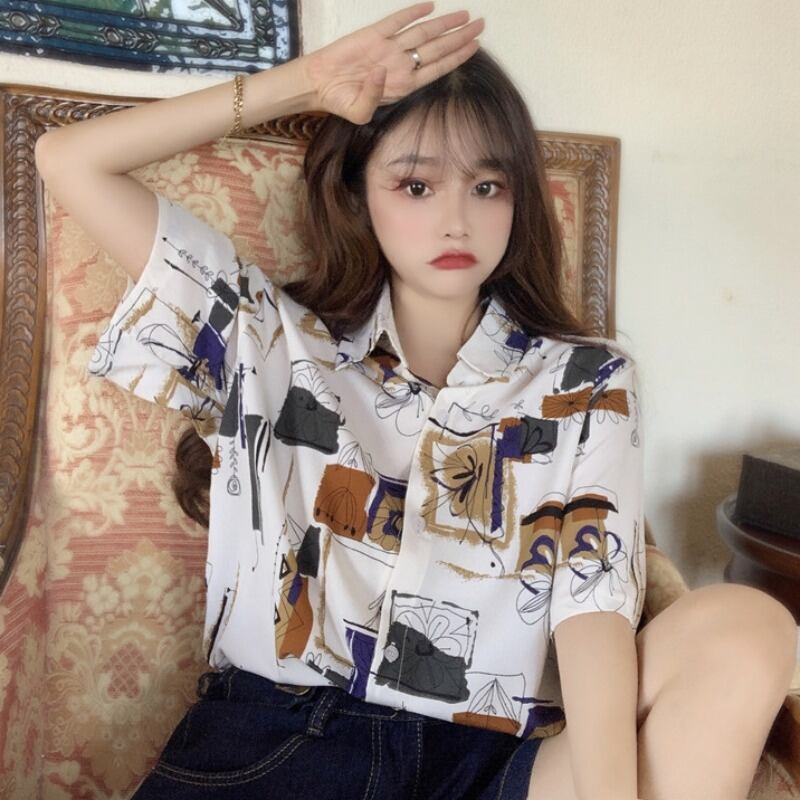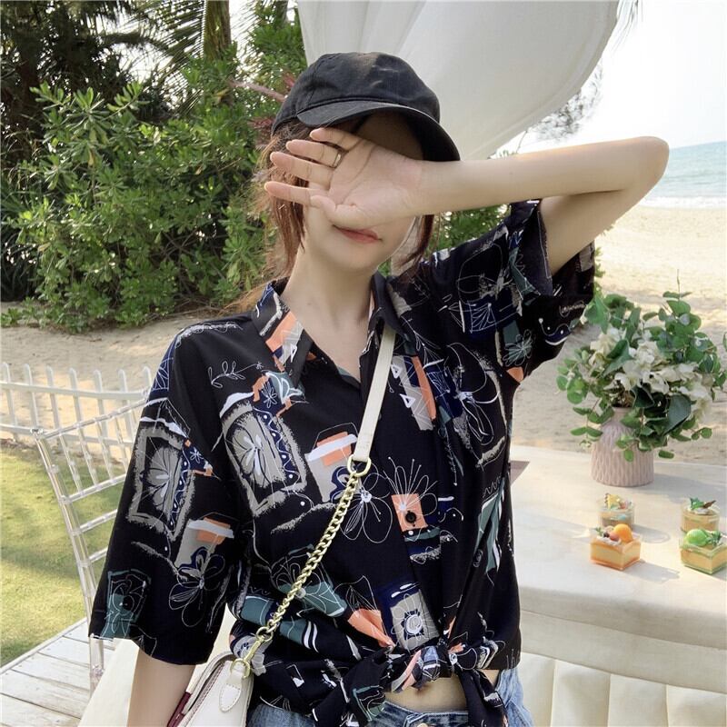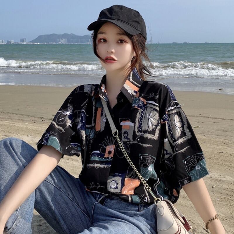 プリントシャツ サマーカラーショートルーズ 半袖 ハーフスリーブ 夏物 ハンチェンe76379295234