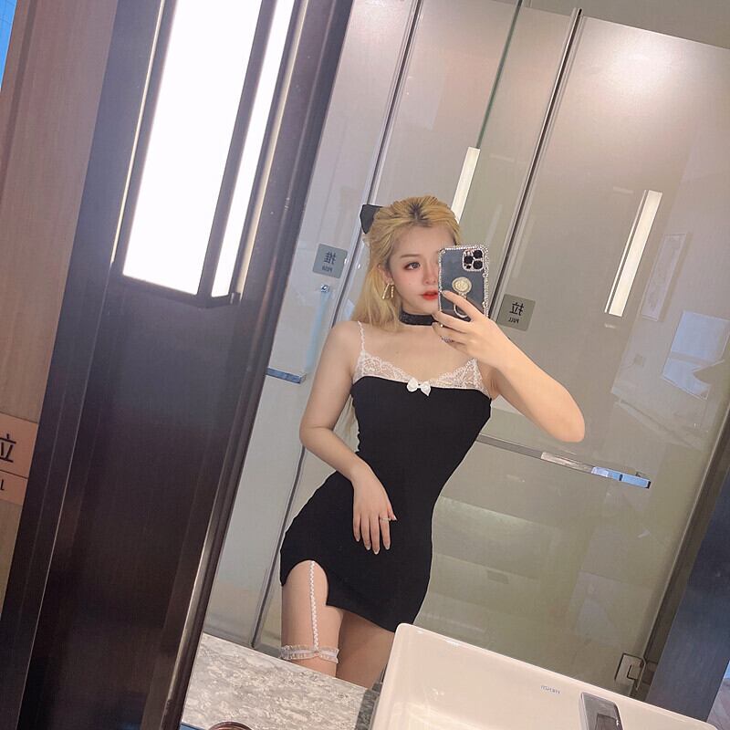 レーススリットドレス サマーリボンスカート 夏物 ピュア ステッチ ハンチェンe78690801771
