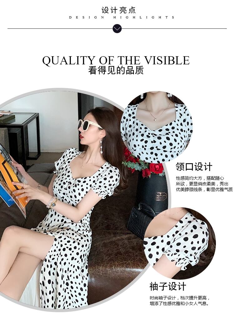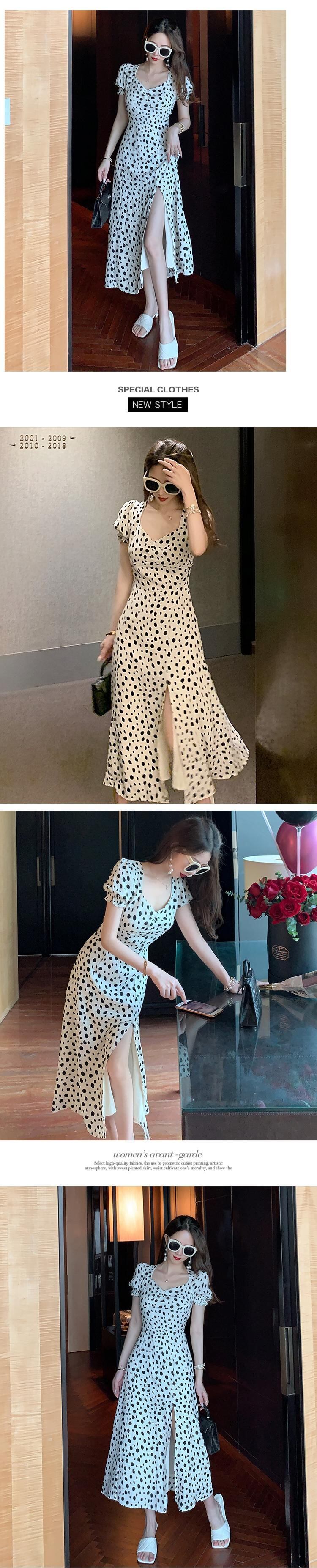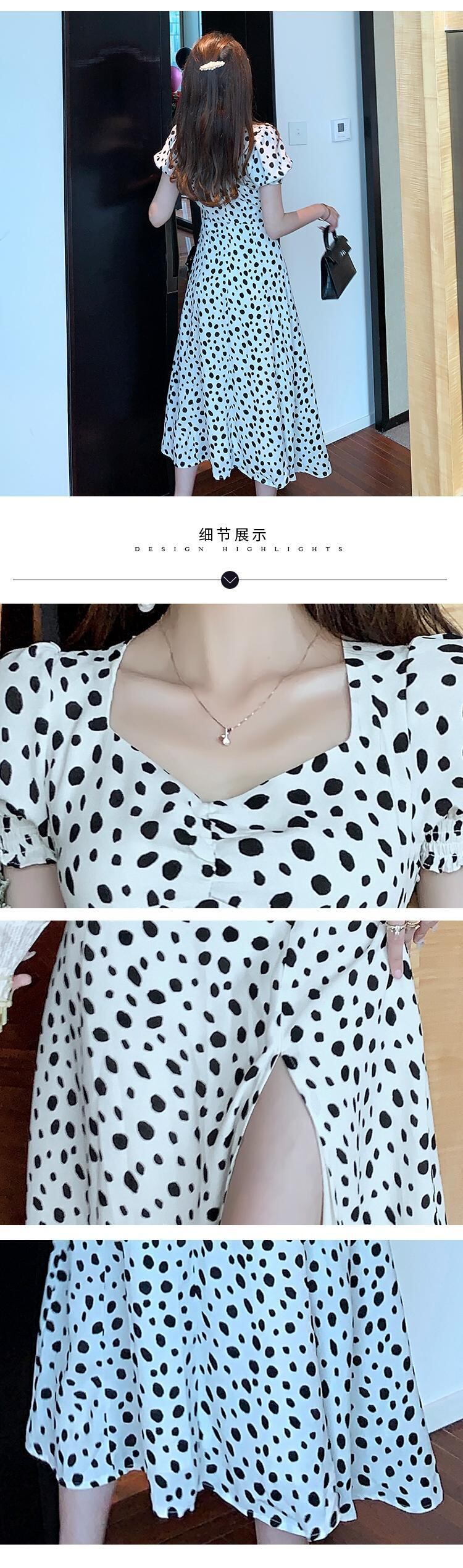 ホワイト水玉スタンダードドレス オータムスタイルカラーウェスト薄手Aラインロングスカート レトロ 秋物 ハンチェンe67972954384