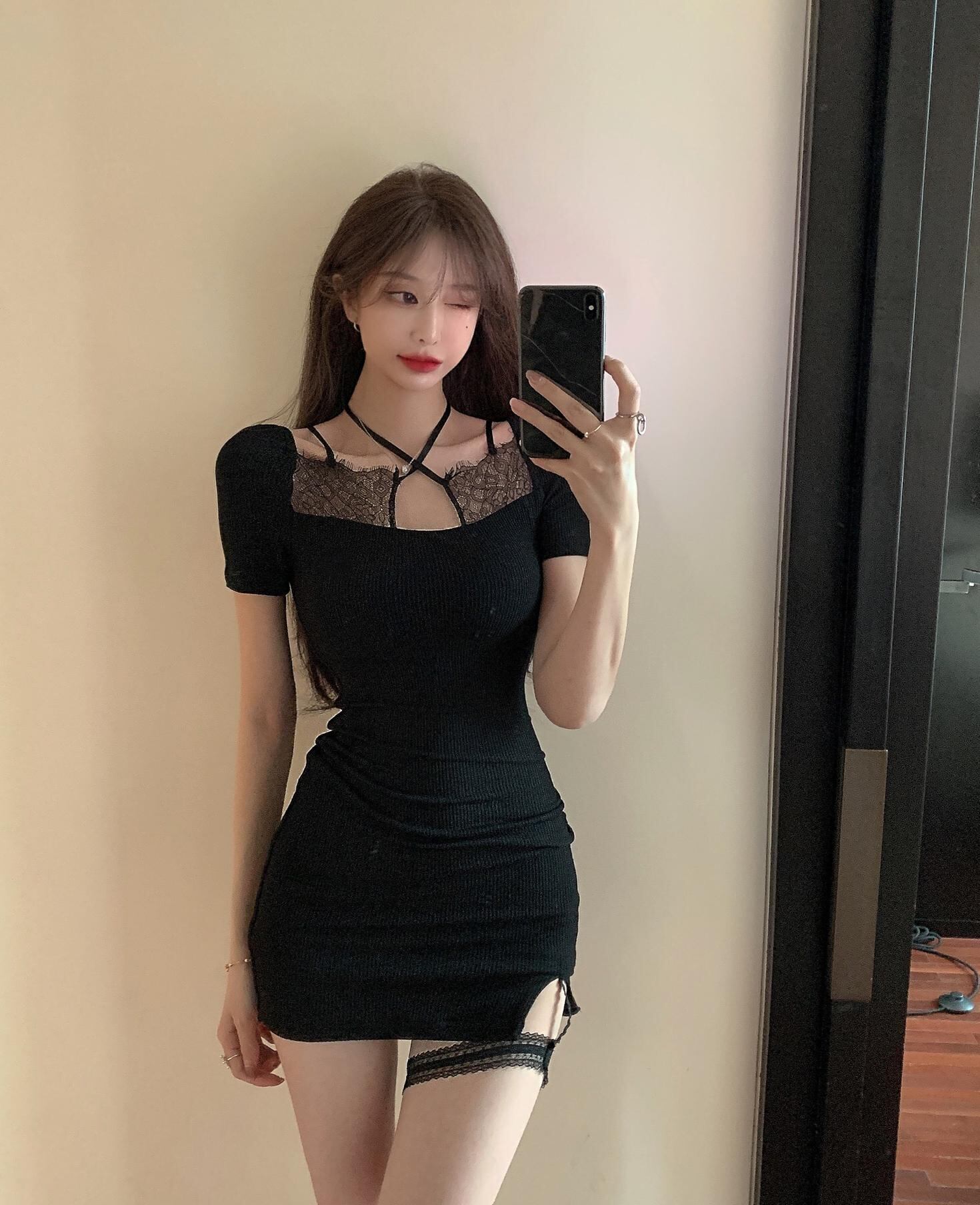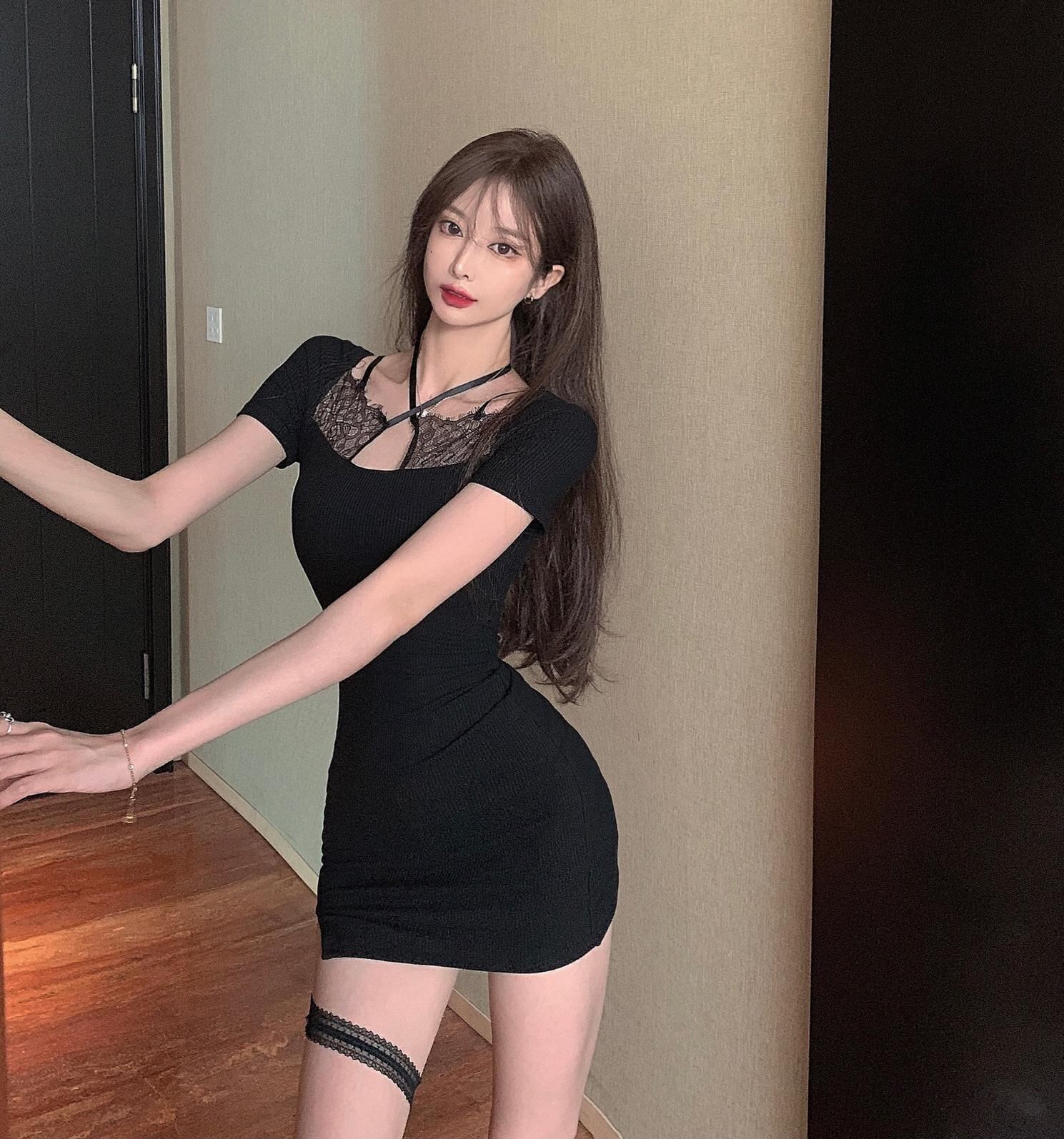 ショートスカート サマーレーススリムフィットドレス 大人ガーリー スウィート キュート カジュアル 夏物 ステッチ ハンチェンe57580959279