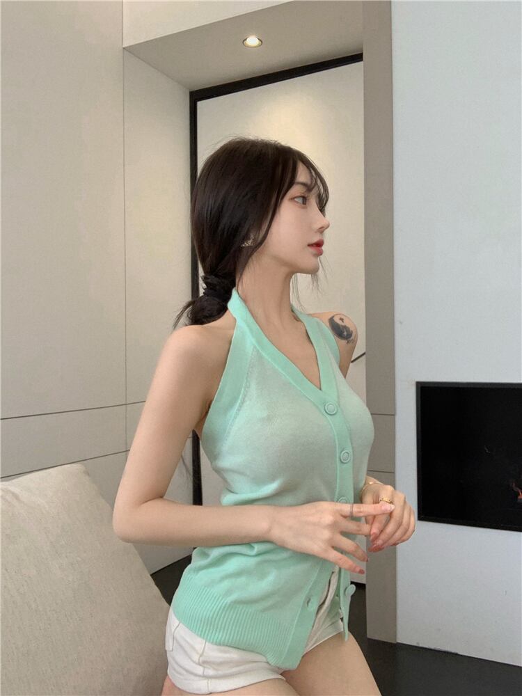 ニットセーター ホルタースタイル薄手ソリッド カラートップス レディース ソリッドカラー ハンチェンe18118357625